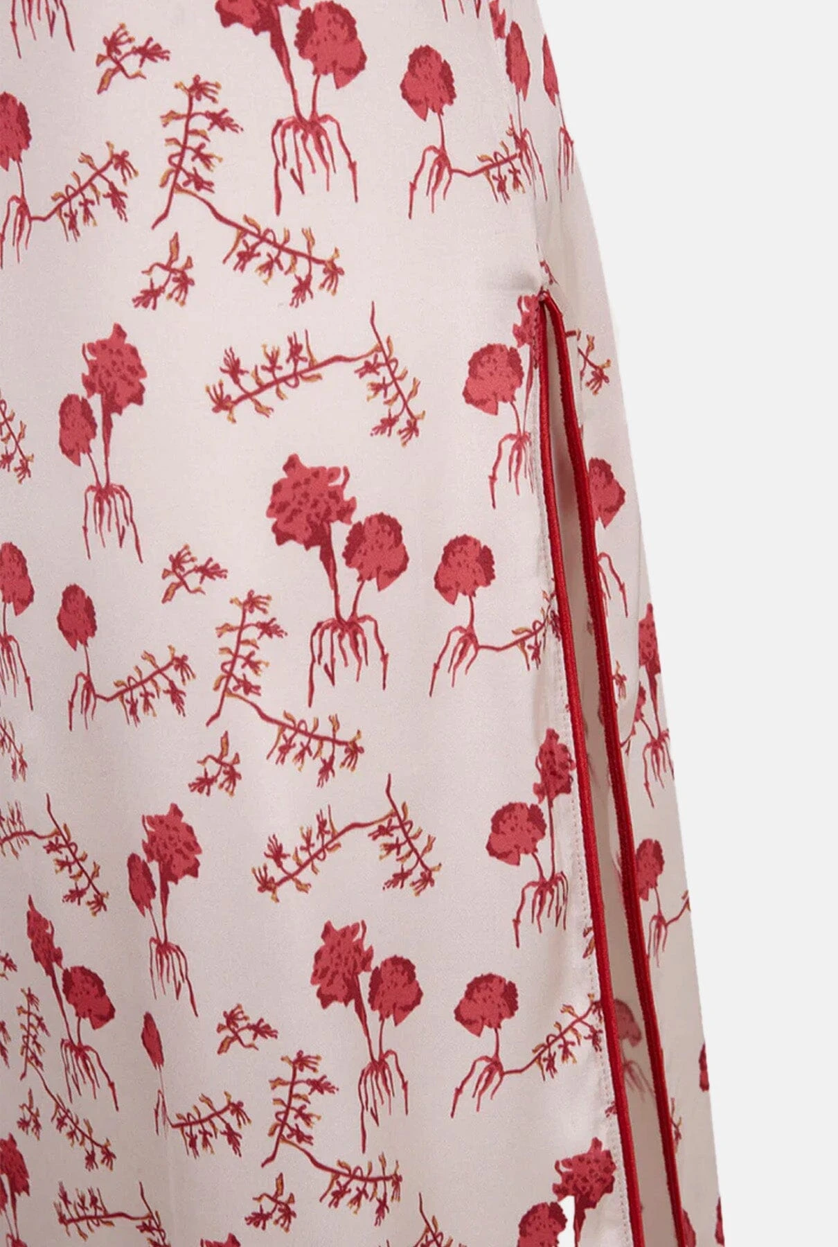 The delicate floral design adds a touch of femininity to the ensemble, while still making a bold statement. What truly sets this dress apart is the mesmerizing print, meticulously crafted by the renowned artist Jorge Dana. Each intricate detail tells a story, capturing the essence of beauty and creativity.