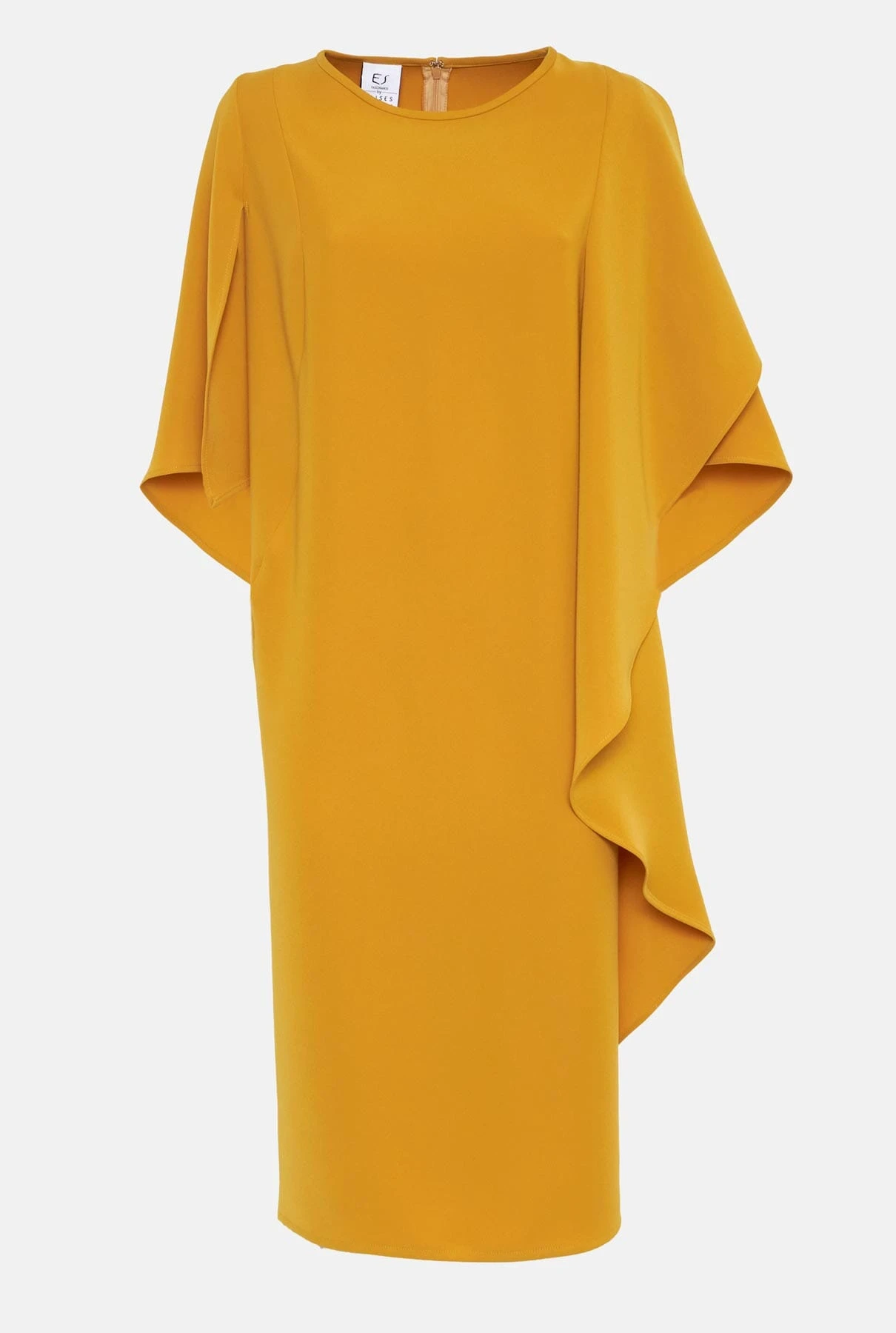 Crep dress with cape sleeve. Invisible back zipper. Designed by Ulises Mérida.