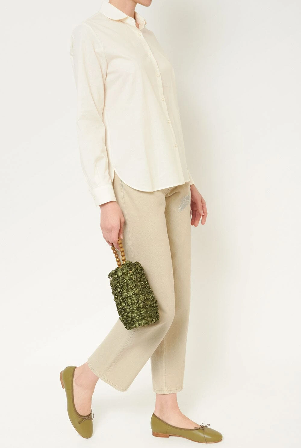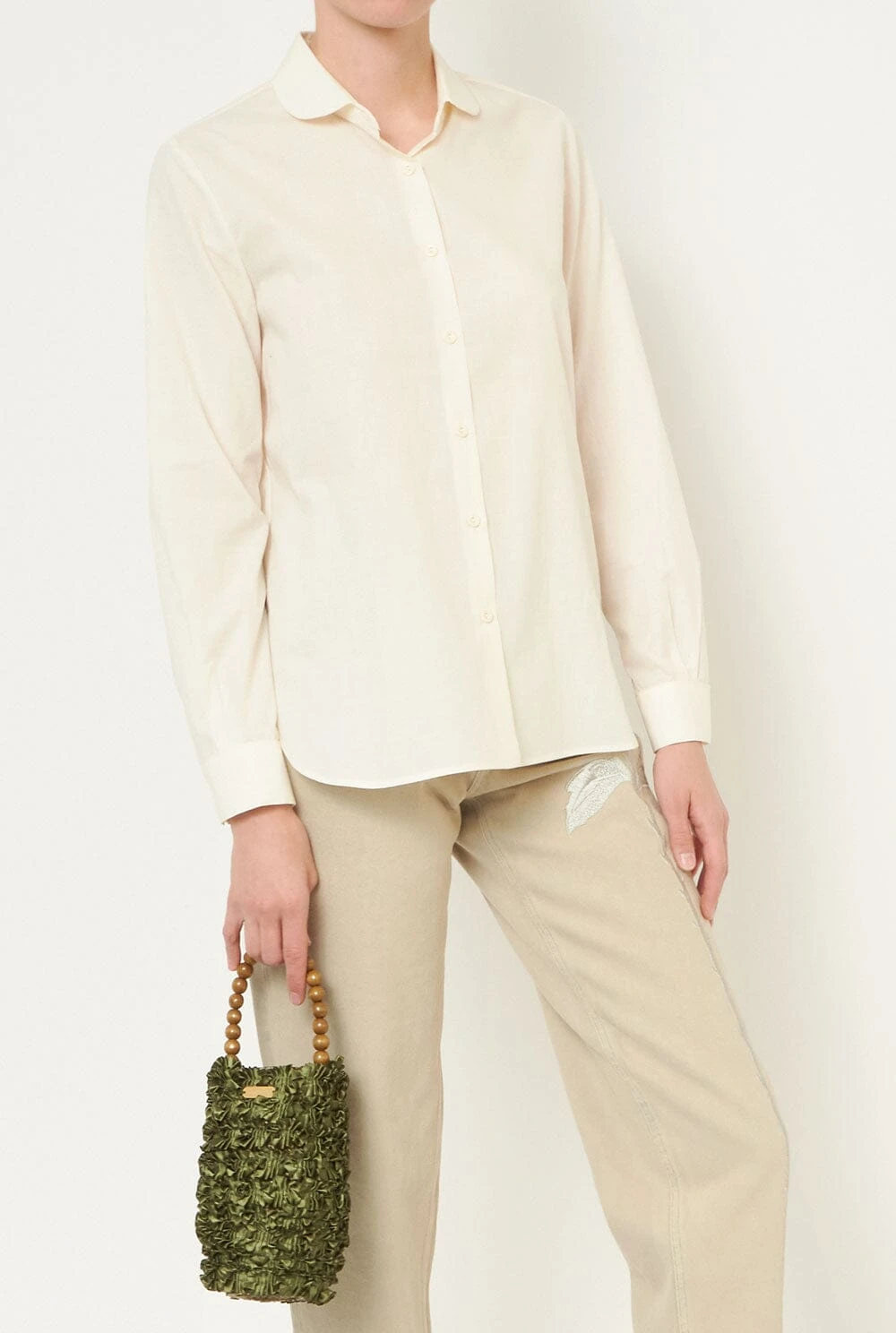 Light beige shirt with baby collar. Made in Spain