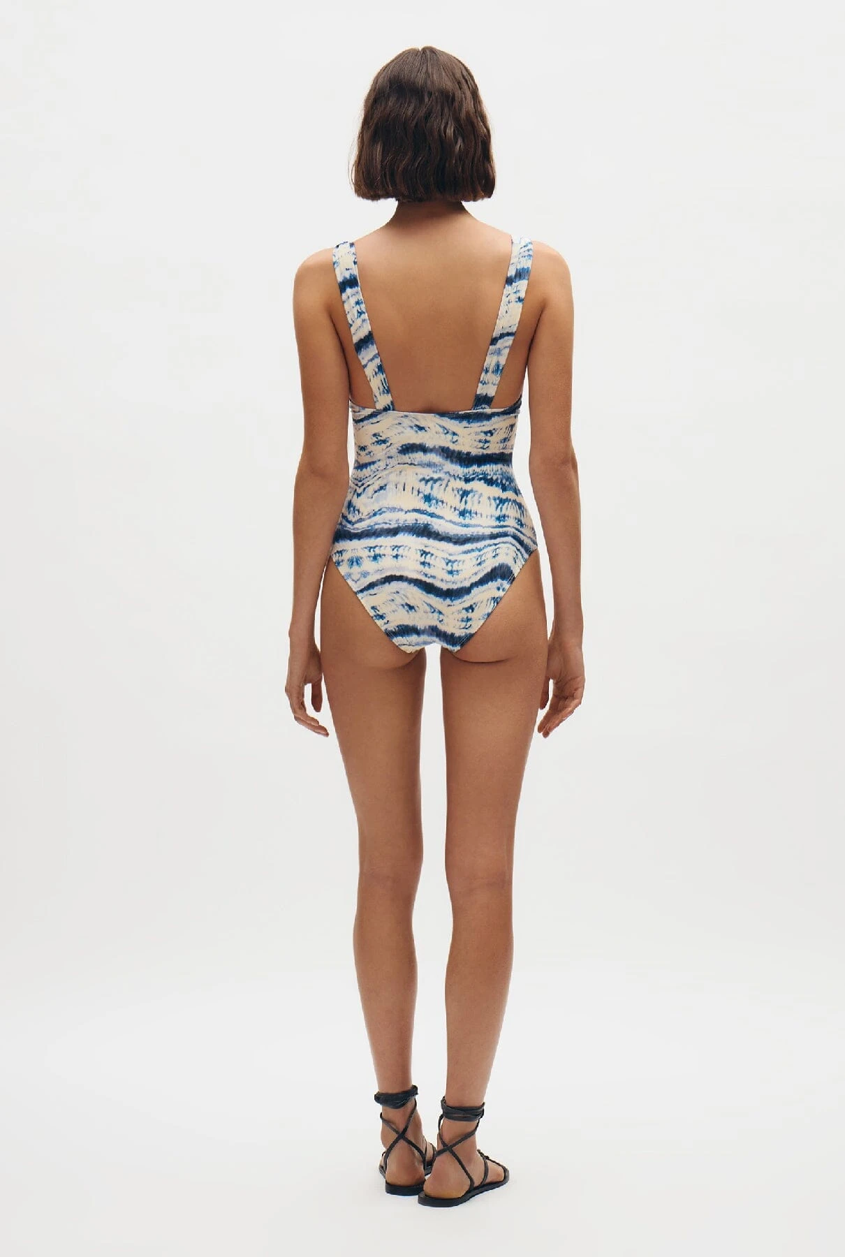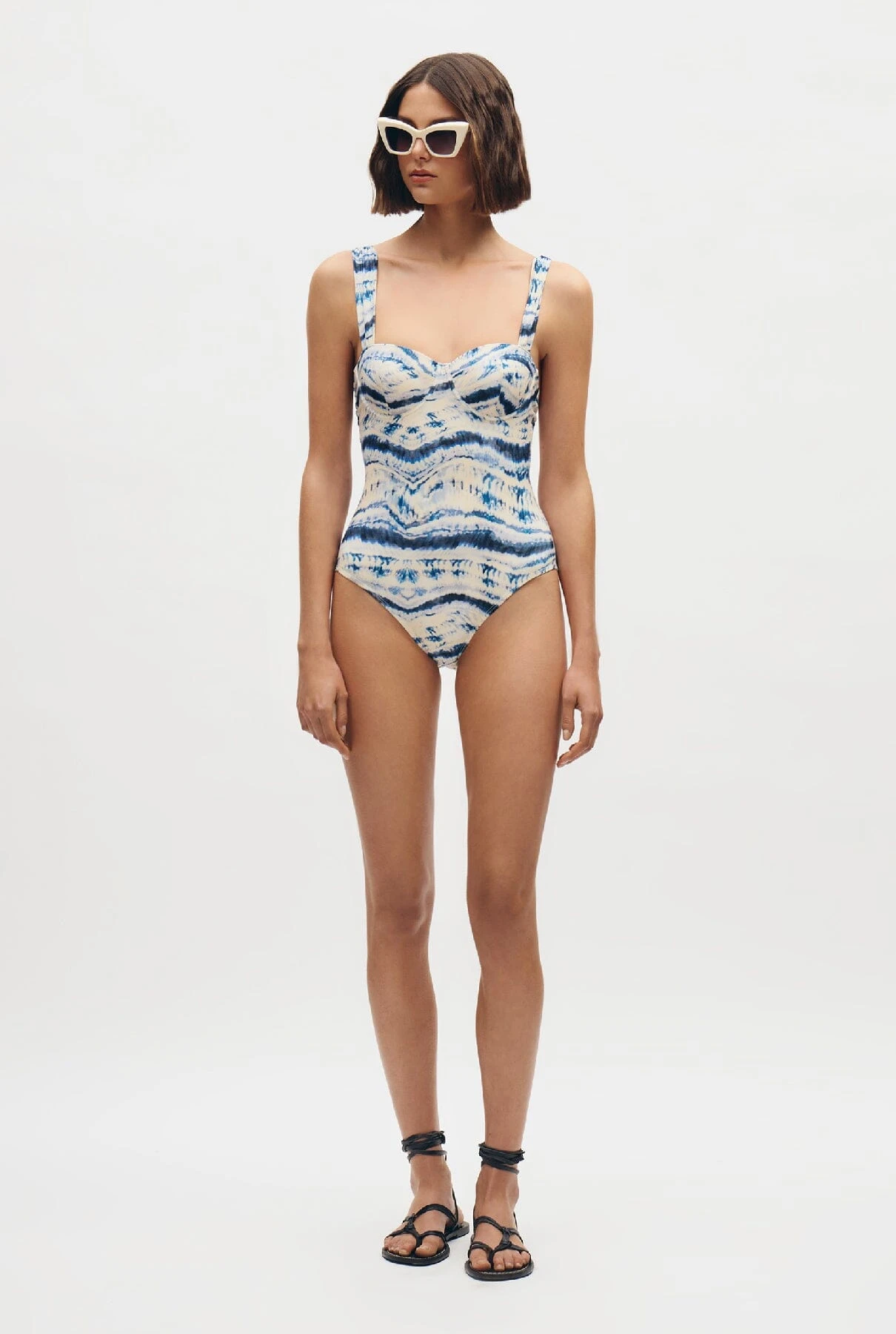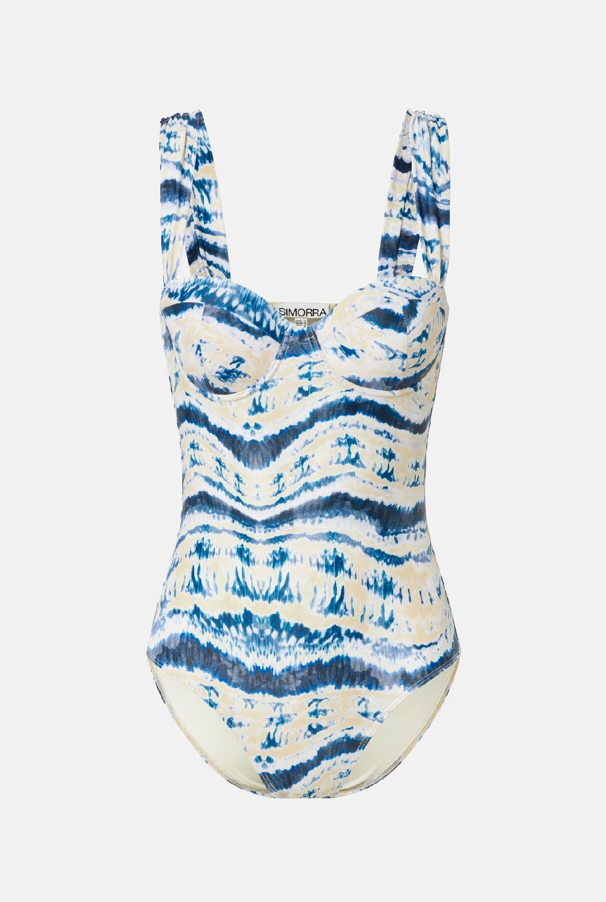 Shaped swimming costume, printed, with underwire, non-removable foam.