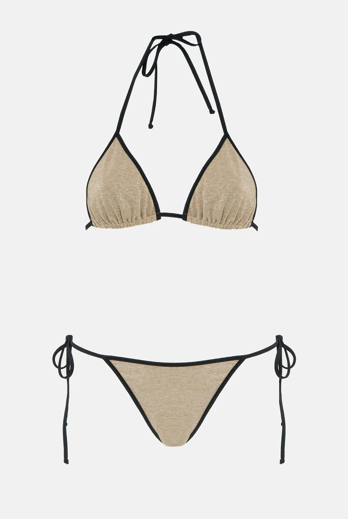 Lightweight swimming costume in gold lurex and black trim. Very thin straps and very comfortable and flattering design that adapts to the silhouette. A must-have in your summer wardrobe. Designed by Wapa Swimwear.