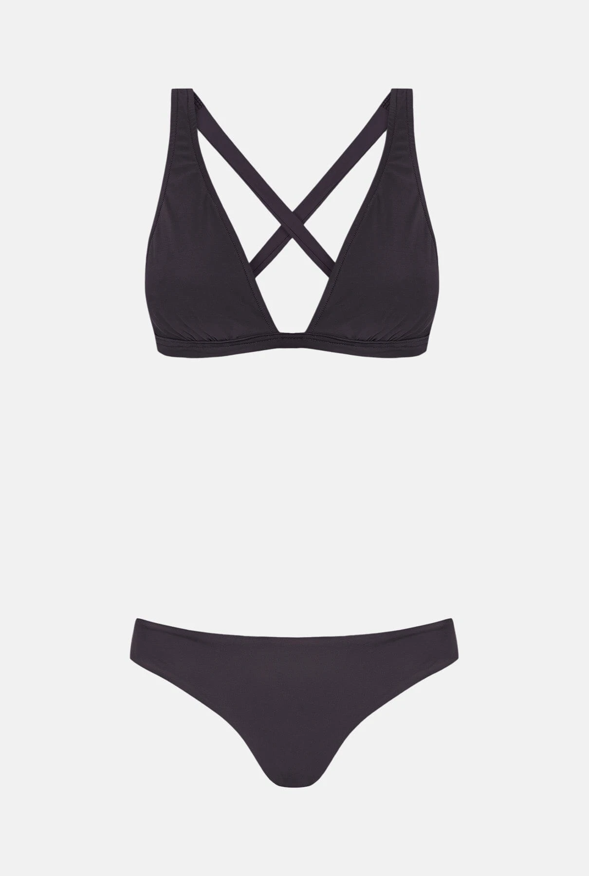 Gray bikini top with adjustable cross back straps that can be tied at the neckline or back for support and comfort. This bikini top is lined and features removable cups. The V-neck design enhances the neckline in a flattering way. You will feel very comfortable.
