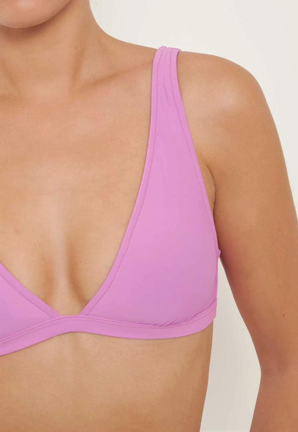 Bikini top with removable cups with a pretty V-neckline and back fastening. The bikini top has a clean and flattering design and offers good support and comfort.