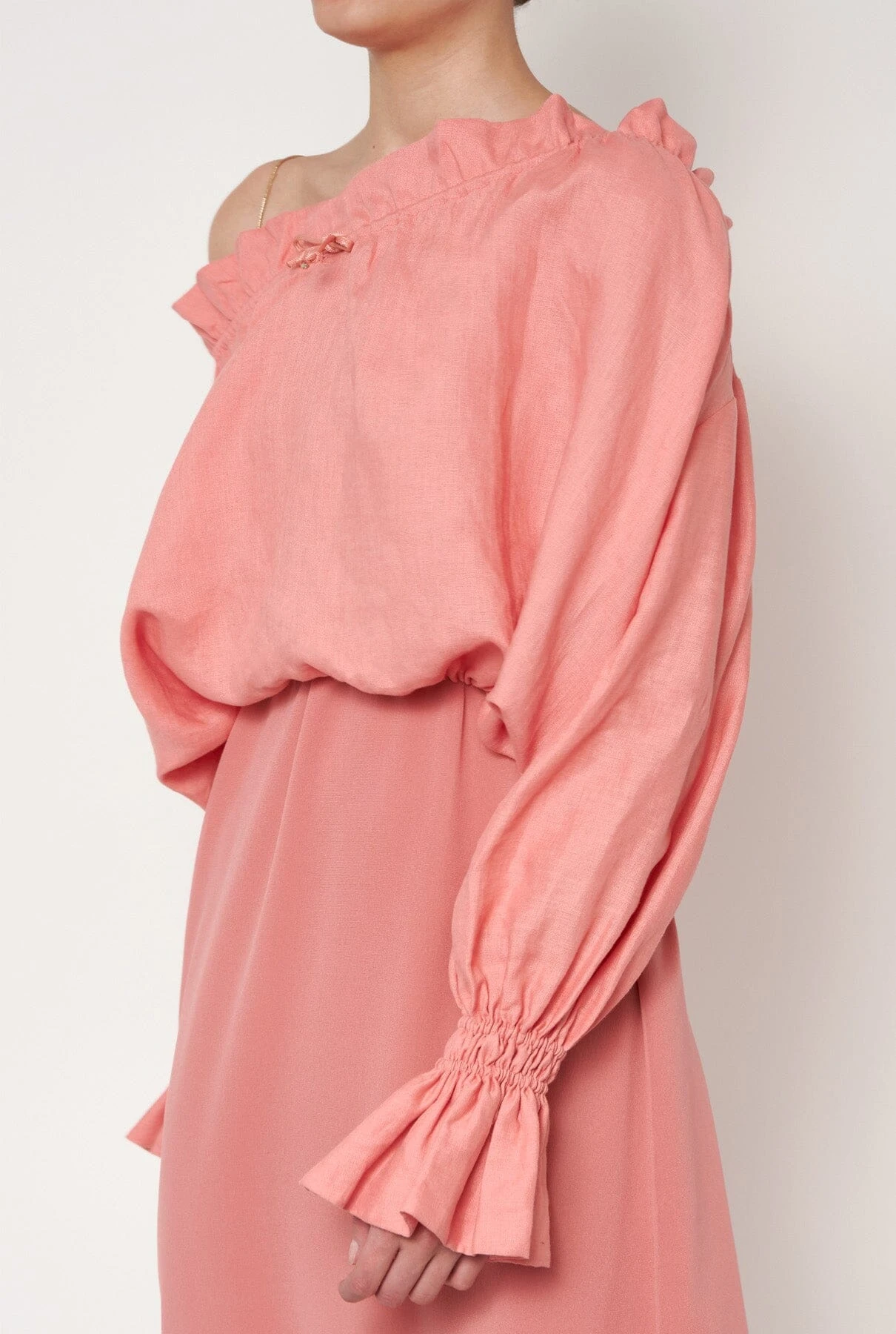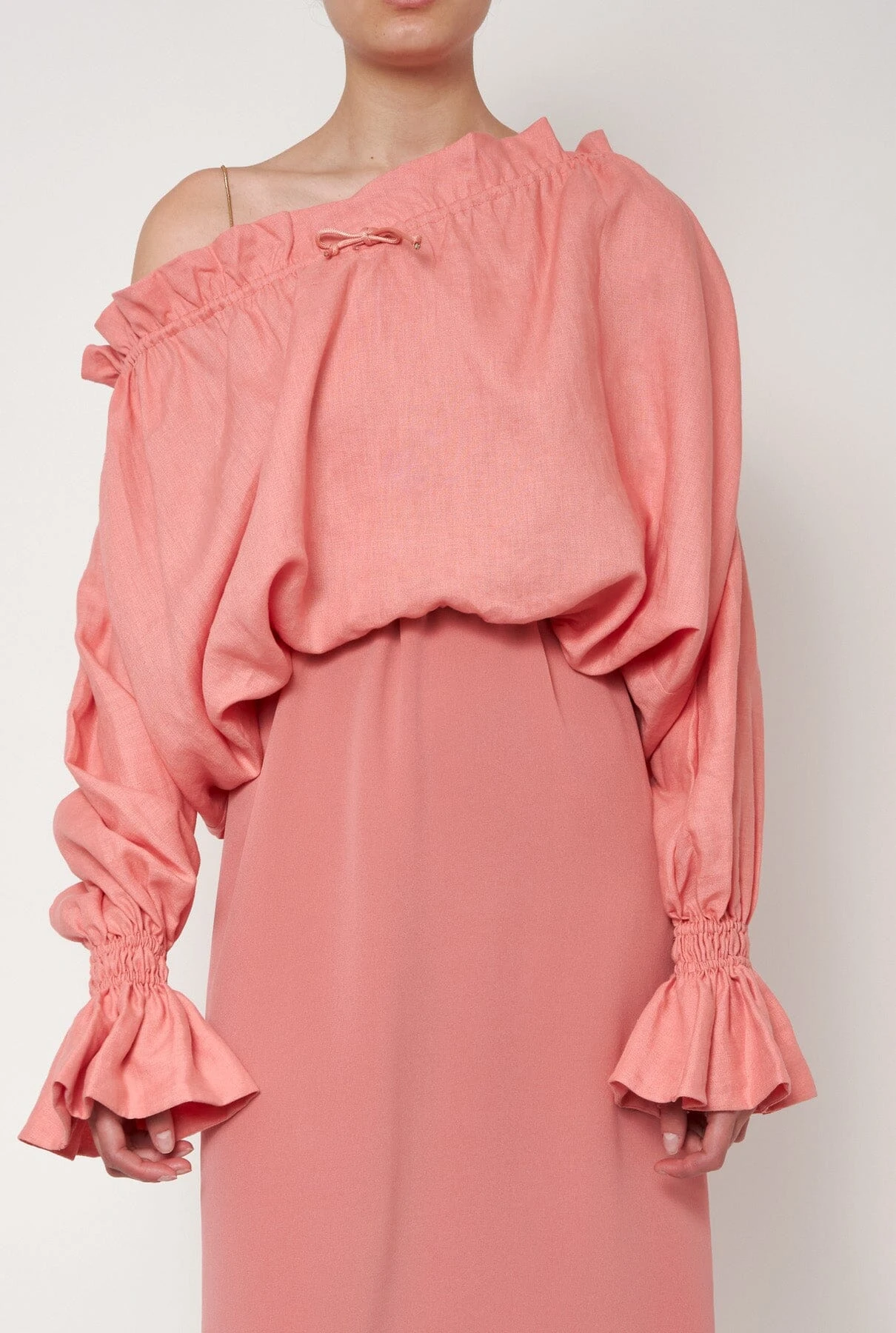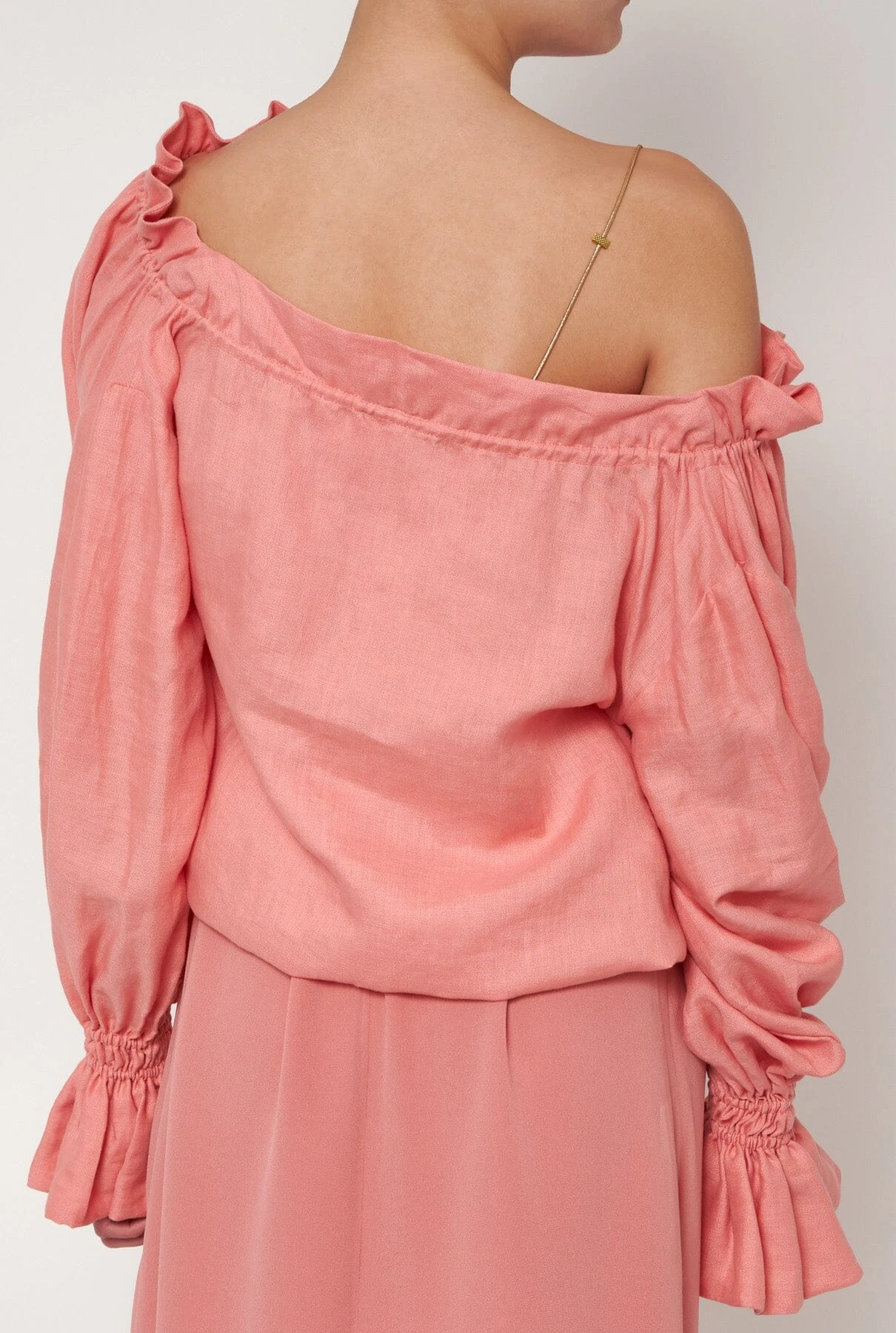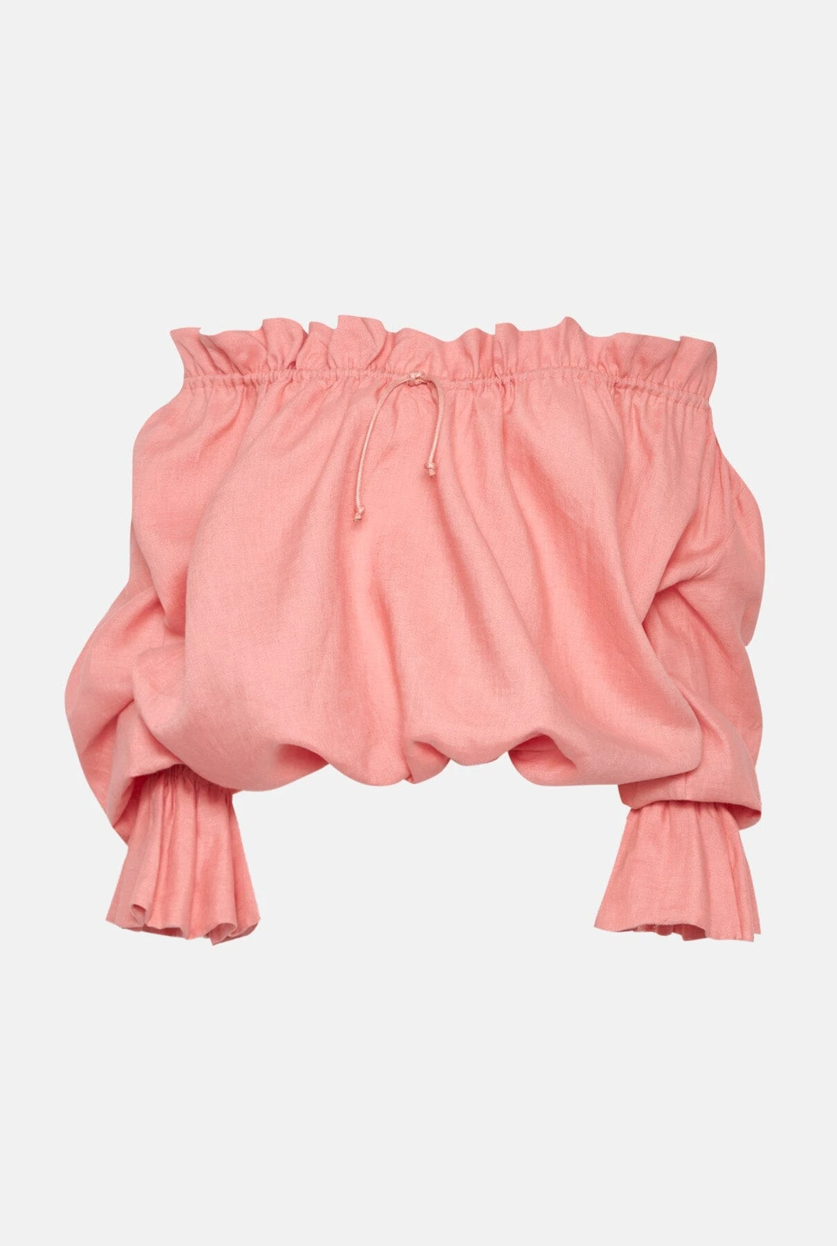 Blouse made by hand in our workshop in Lanzarote. Puffed blouse with ribbons. Puffed sleeves with honeycomb detail on the sleeve.