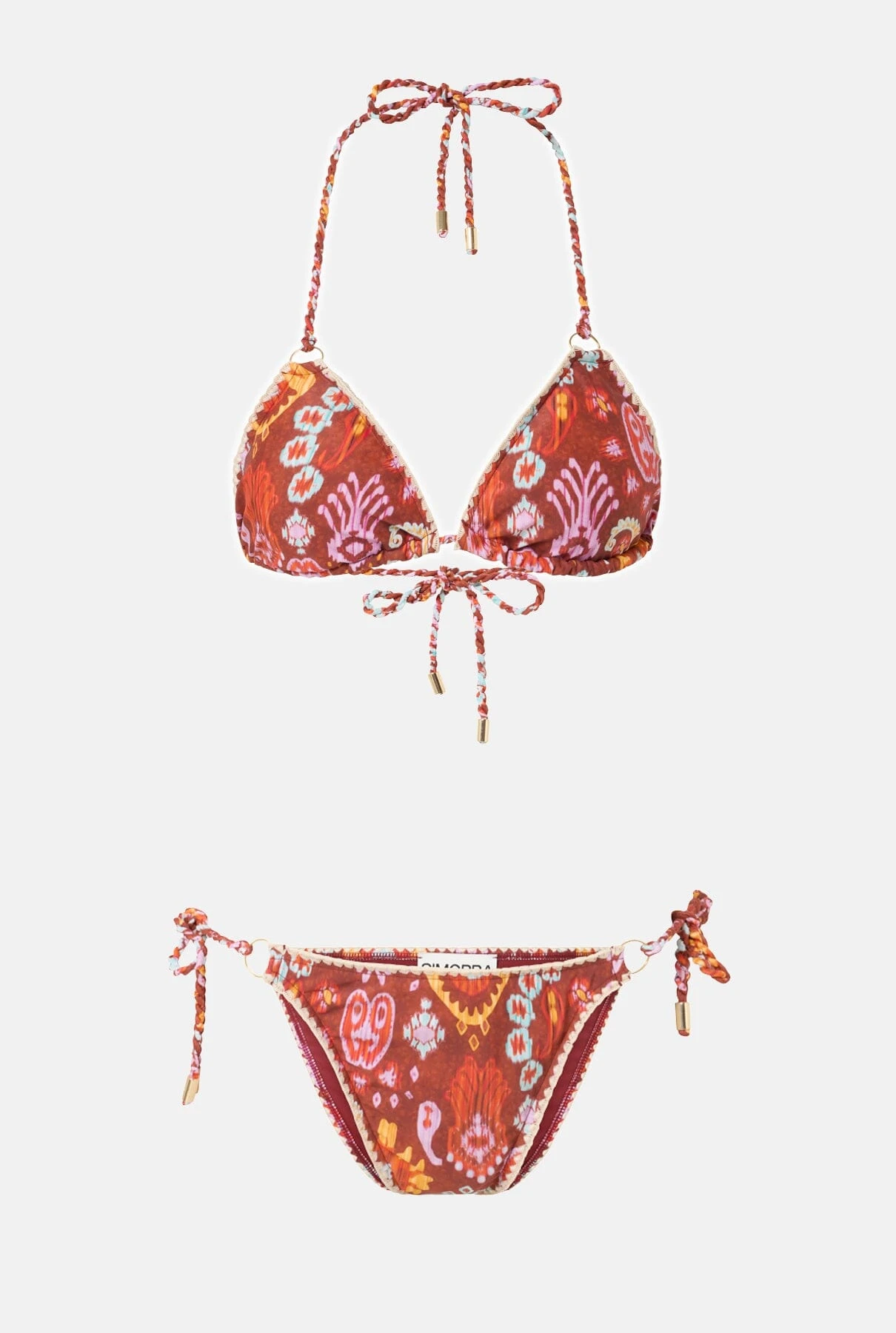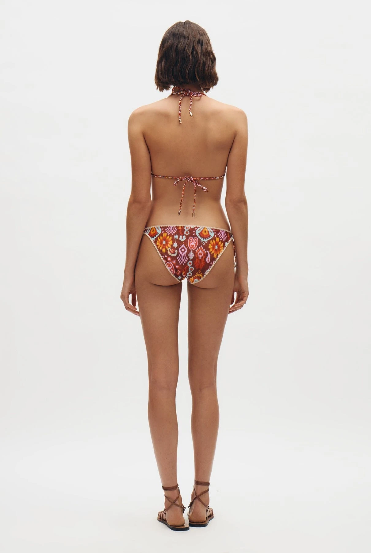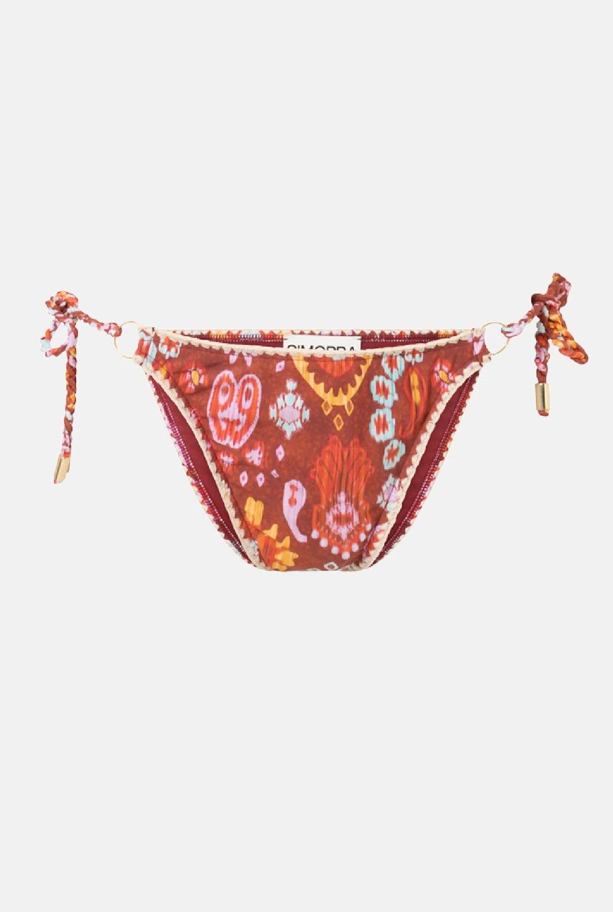 Adjustable printed bikini bottoms with bow, decorative contrast stitching and double fabric lining.