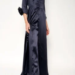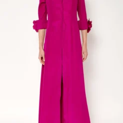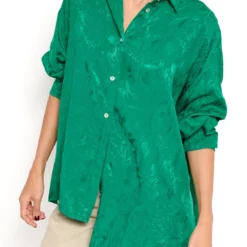 Long sleeve cotton poplin shirt with collar, gathers in the yoke and cuffs design.