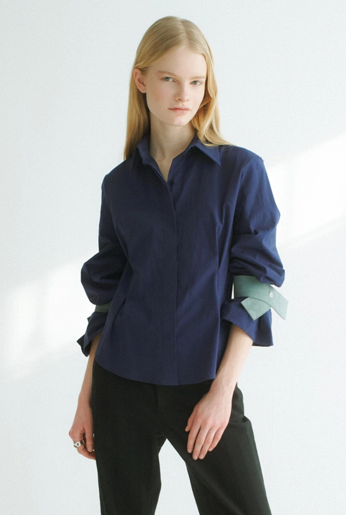 Miguel Marinero shirt in blue cotton. The removable suede details on the sleeves make it special and unique, providing a sophisticated and characteristic look of the firm. Complete your wardrobe with this wardrobe staple shirt, a versatile option for smart meetings or a more casual, tailored look.