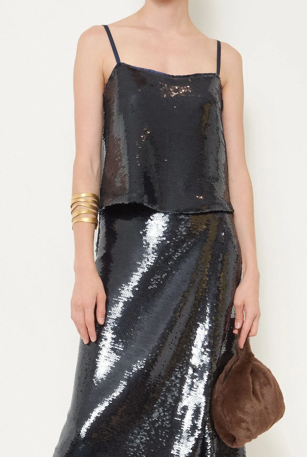 High quality sequin top with satin straps.