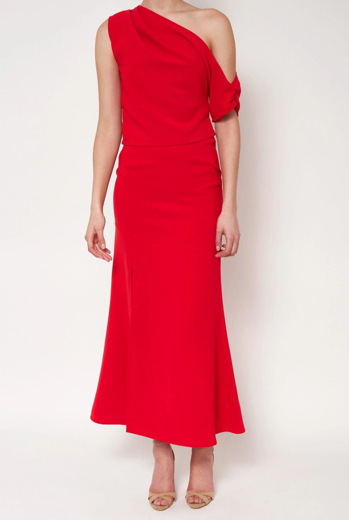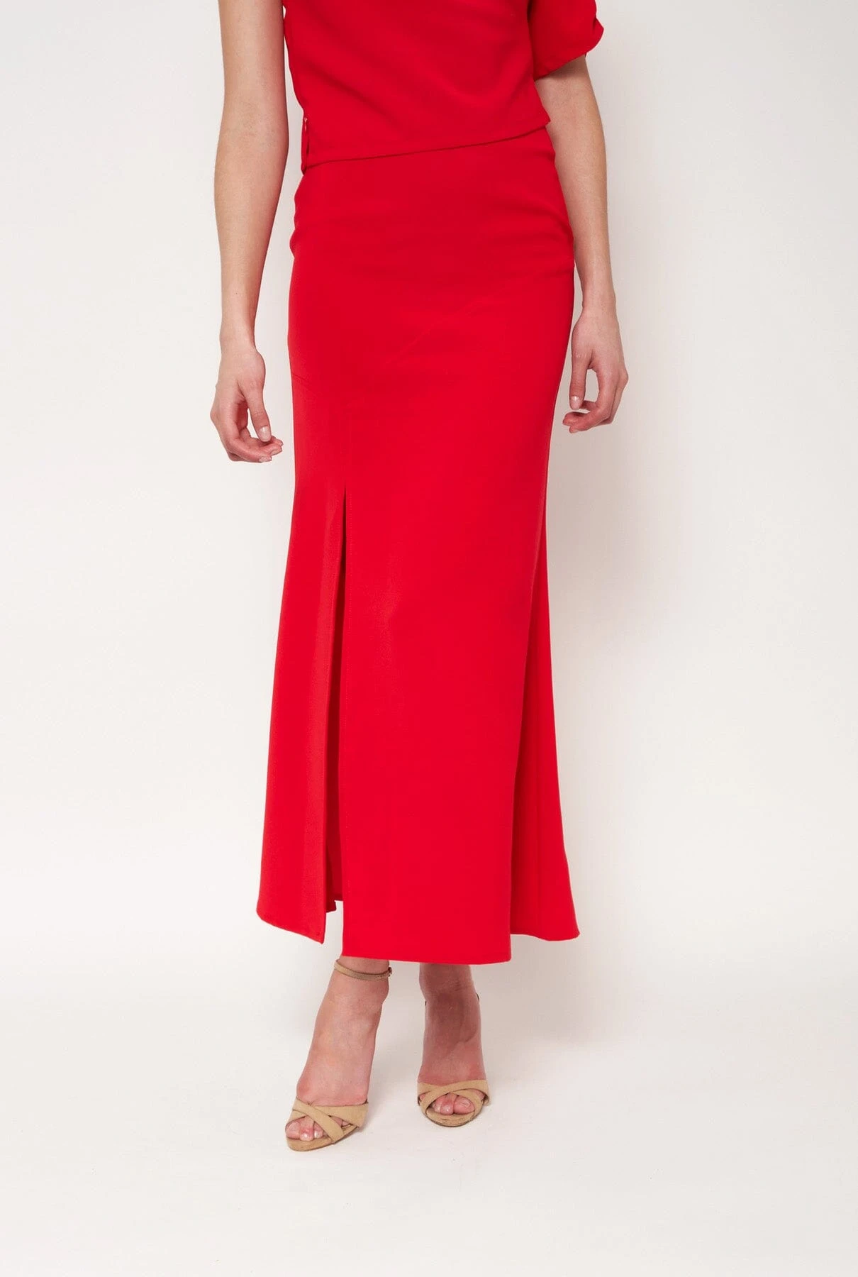 Skirt made by hand in our workshop in Lanzarote. High-waist skirt, which is fitted at the waist thanks to an exposed seam that goes from the waist to the hip. It has a side opening to give volume to the movement. It closes with a concealed zip at the back.