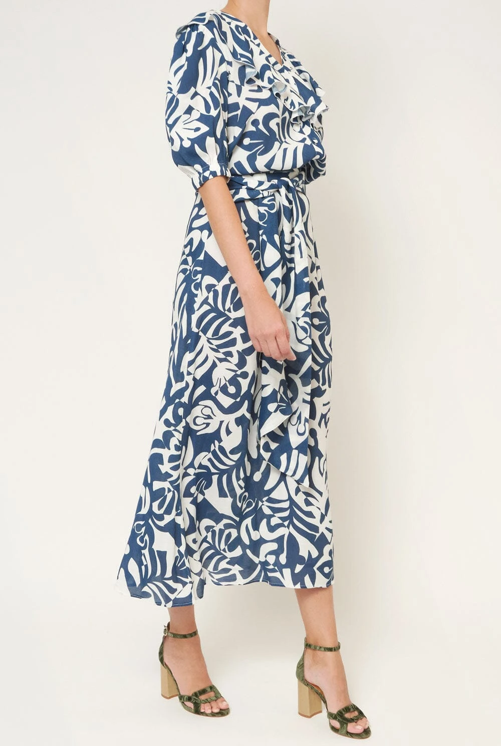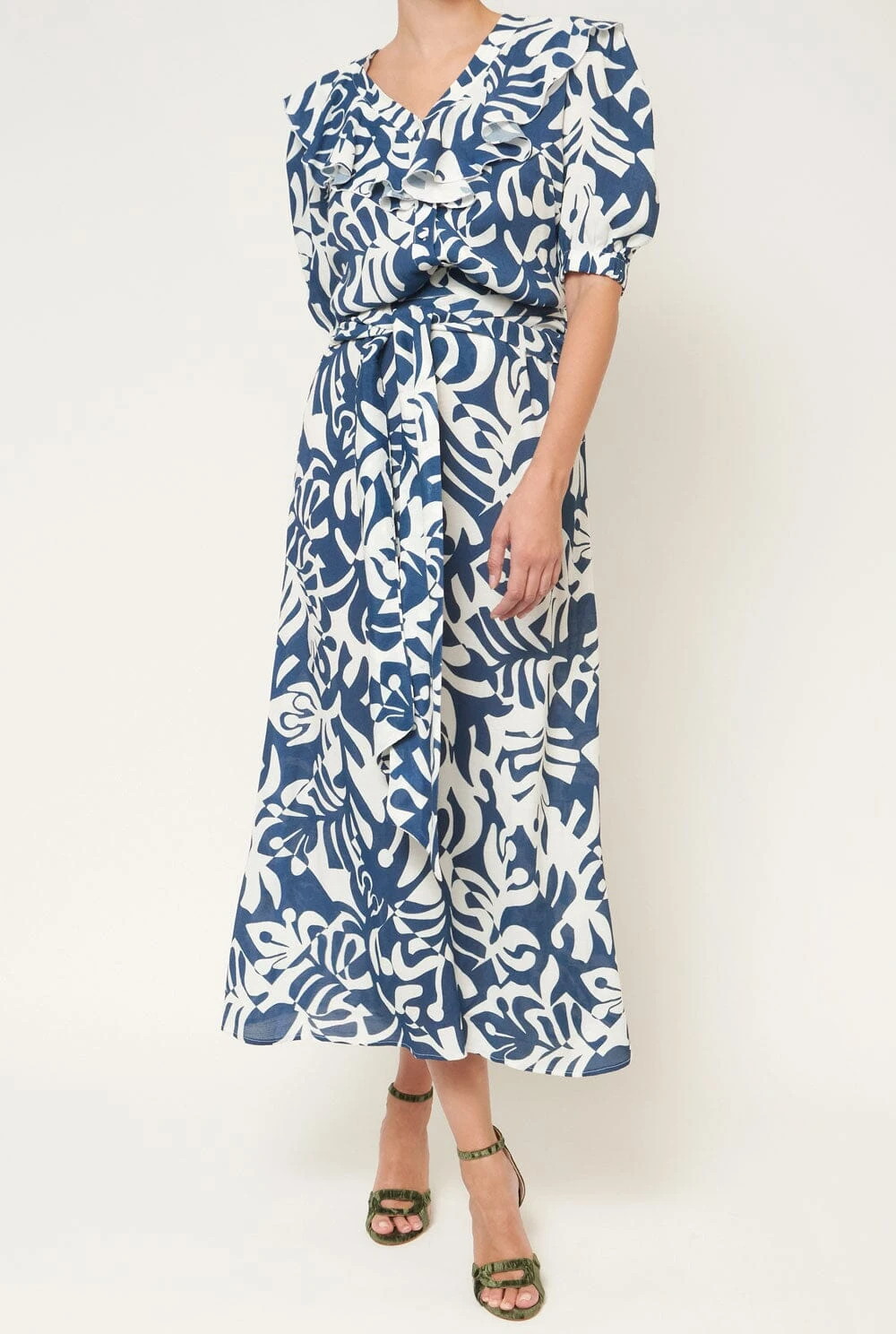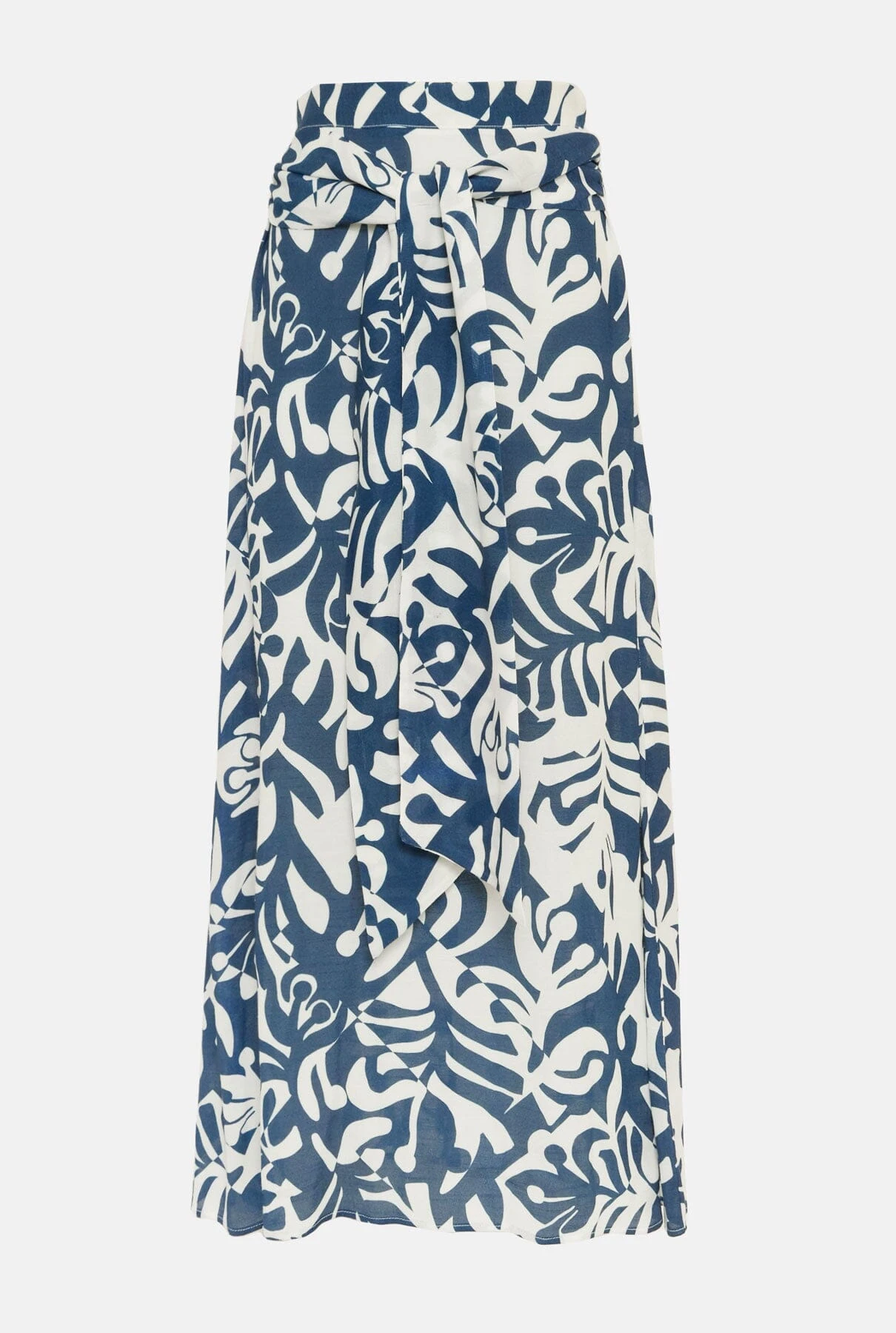 Blue and off-white printed midi skirt. Back zipper closure and side laces to adjust the waist or just for decoration. Wash at 40 degrees, do not iron, do not tumble dry, do not dry clean and do not use bleach