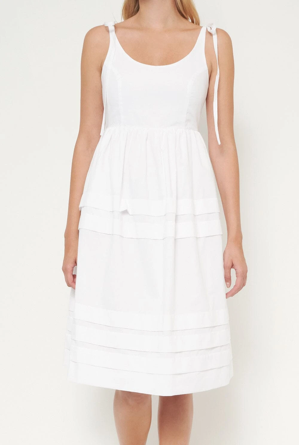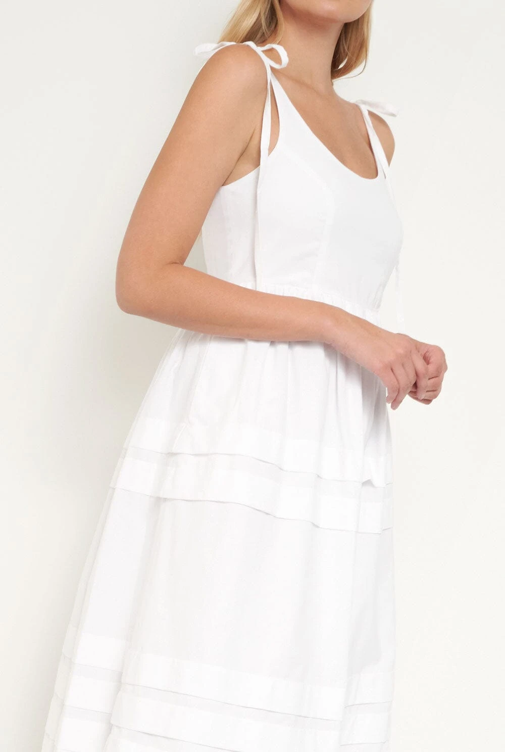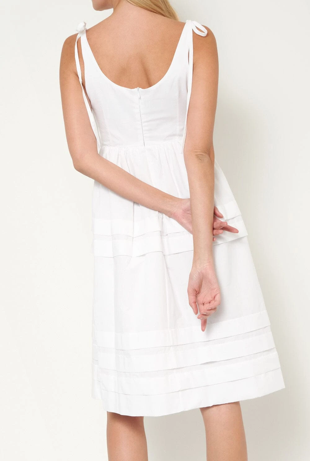 White cotton poplin strapless dress with parrot and cotton voile lining.