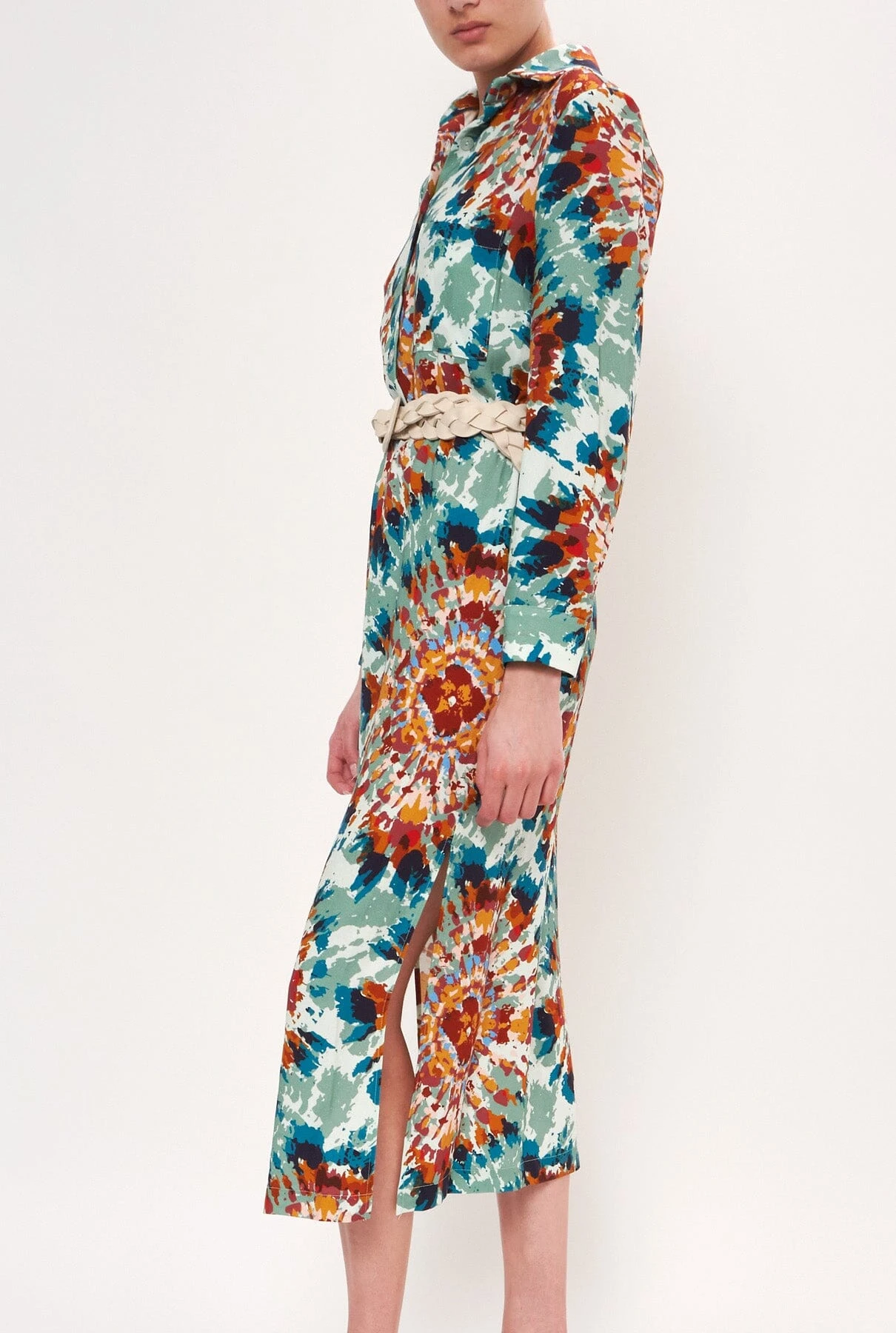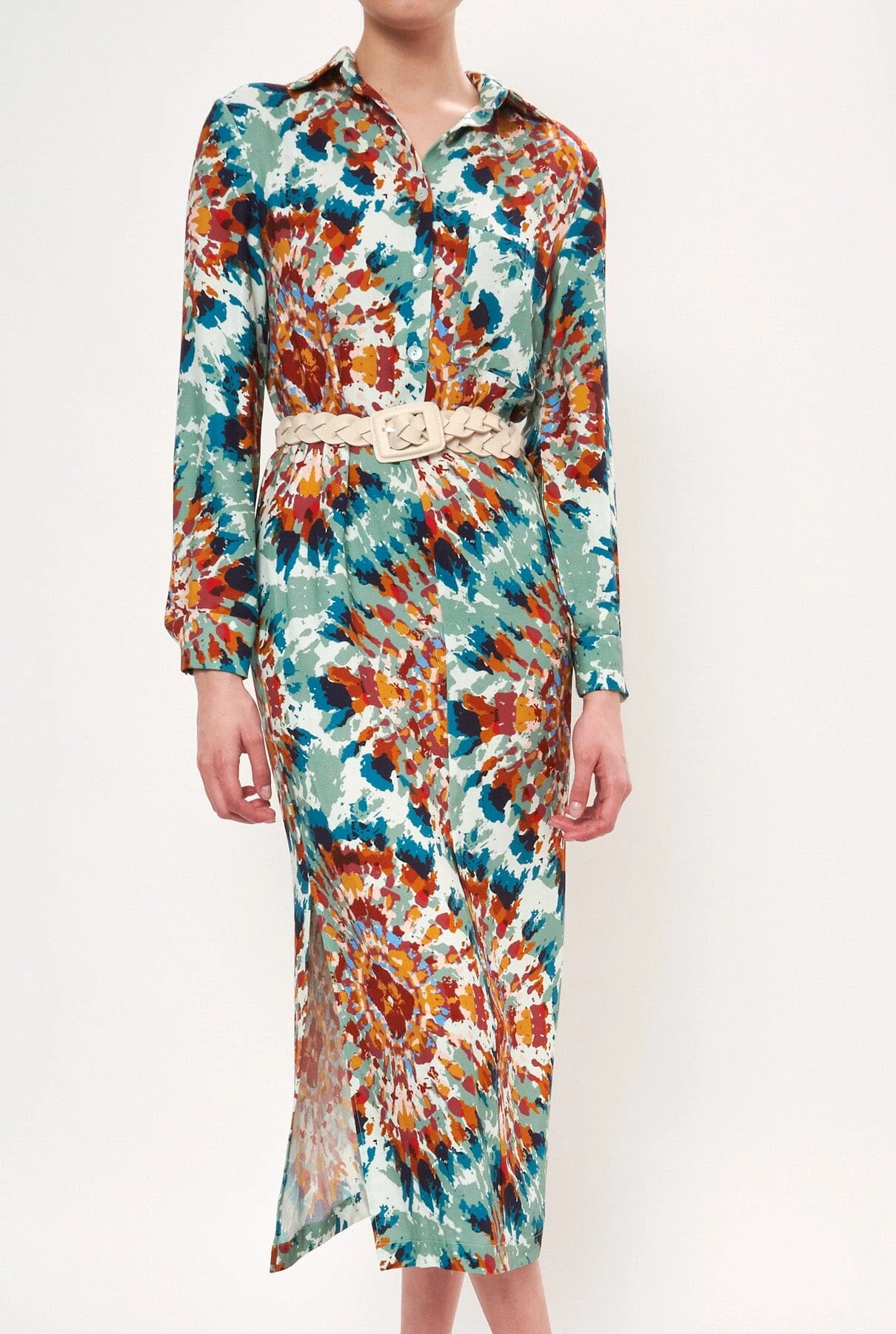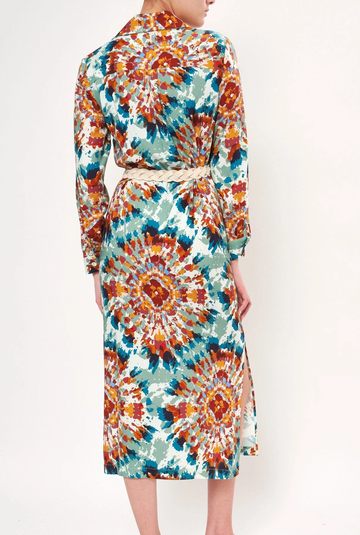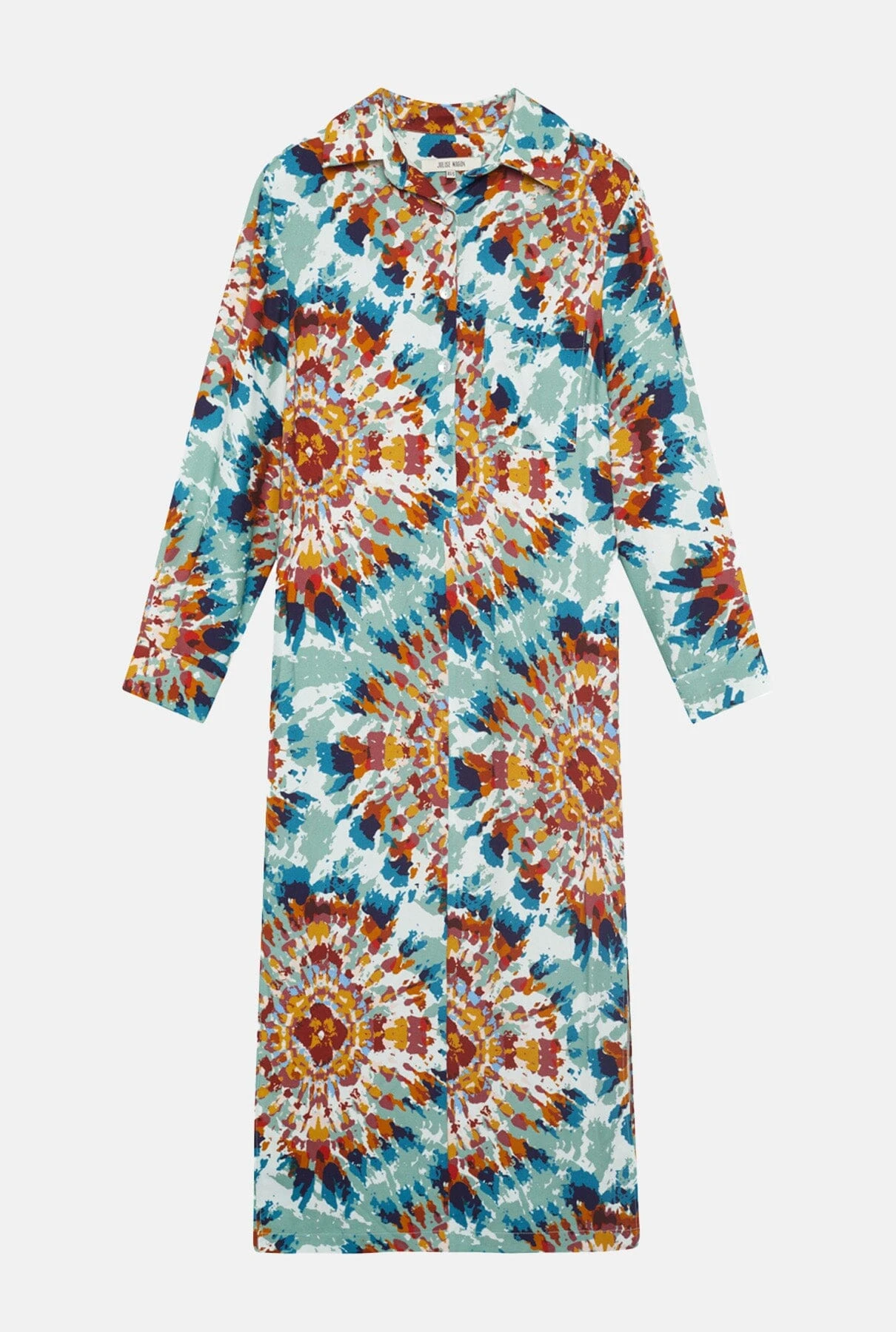 Tie dye printed shirt dress. With mother-of-pearl summary fastening on the body. In 2 shades: Ibiza blues and Ibiza pinks.