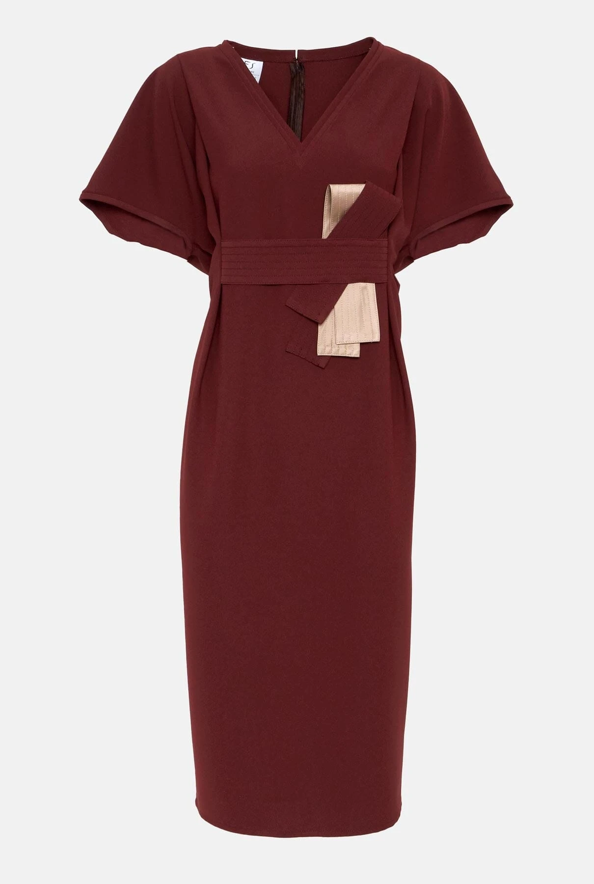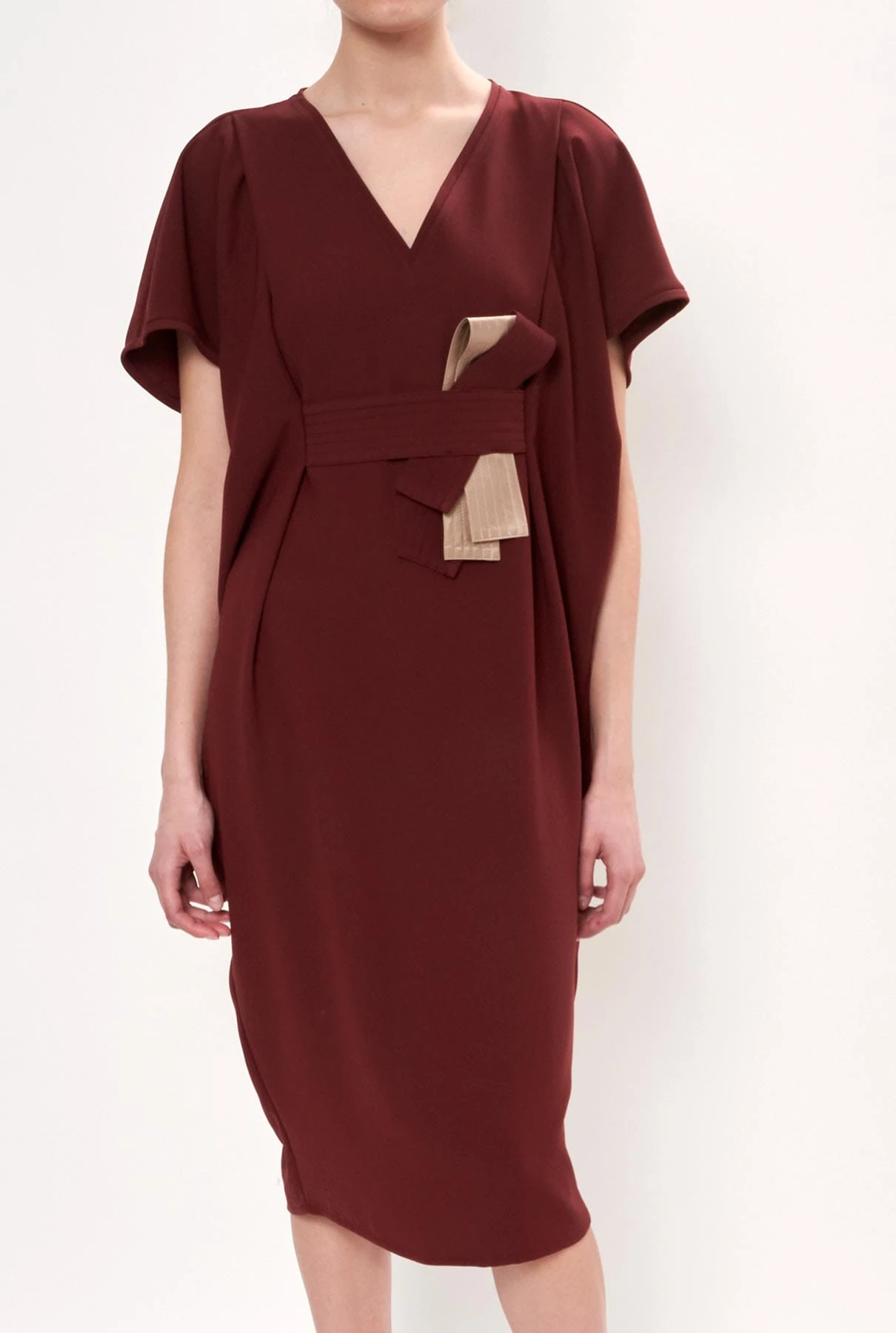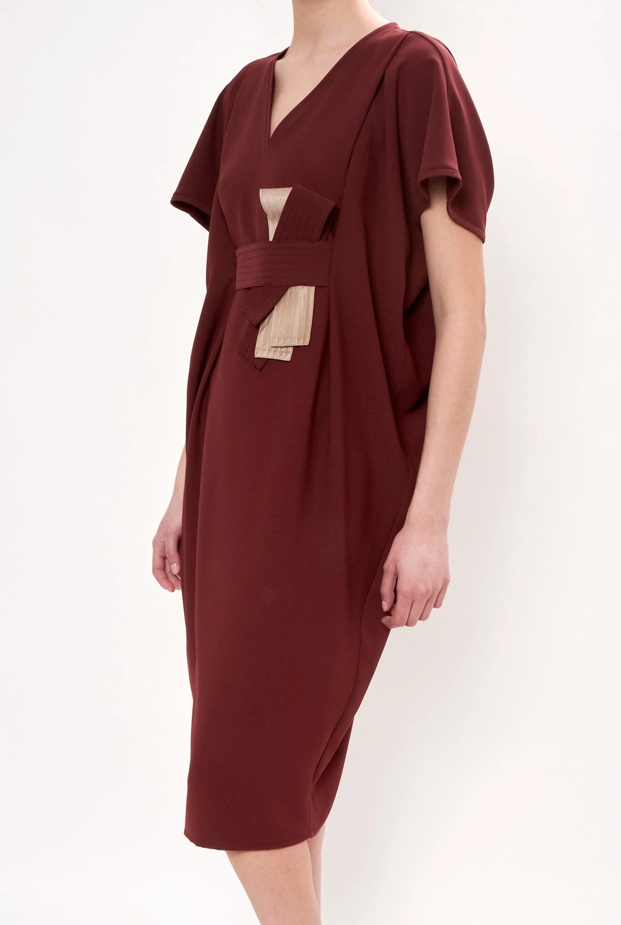 Crepe tunic dress. Ornament belt.Invisible back zipper. Designed by Ulises Mérida.