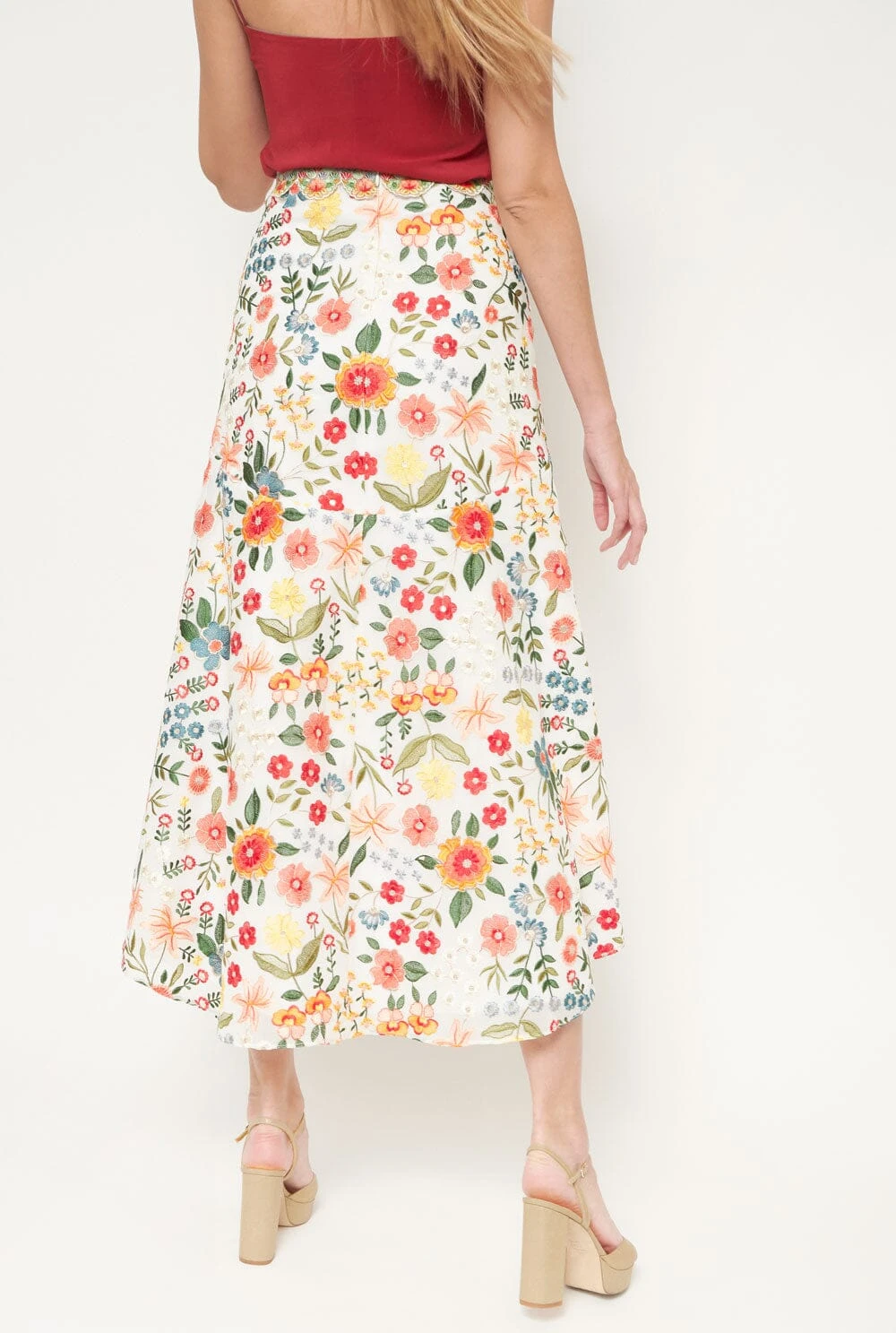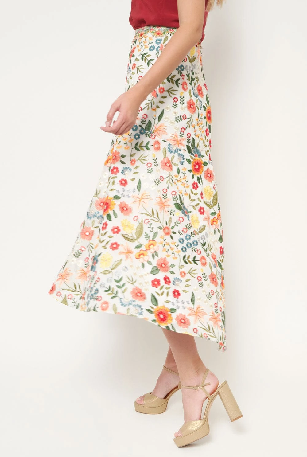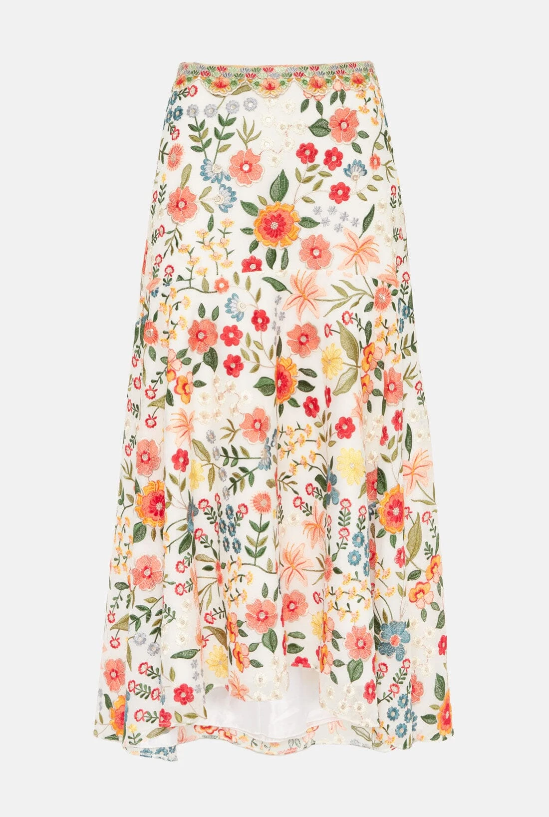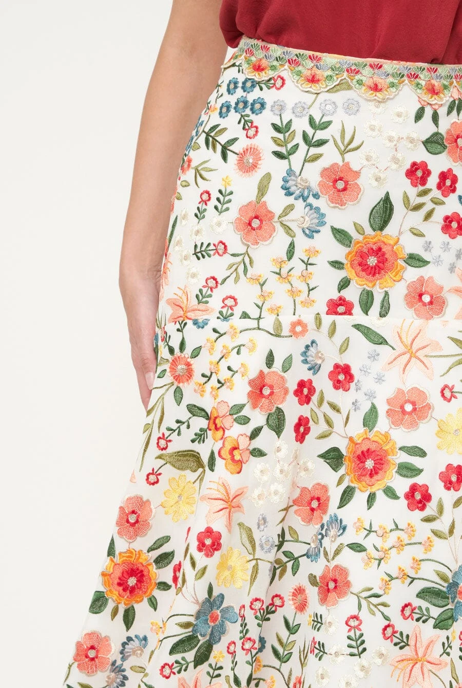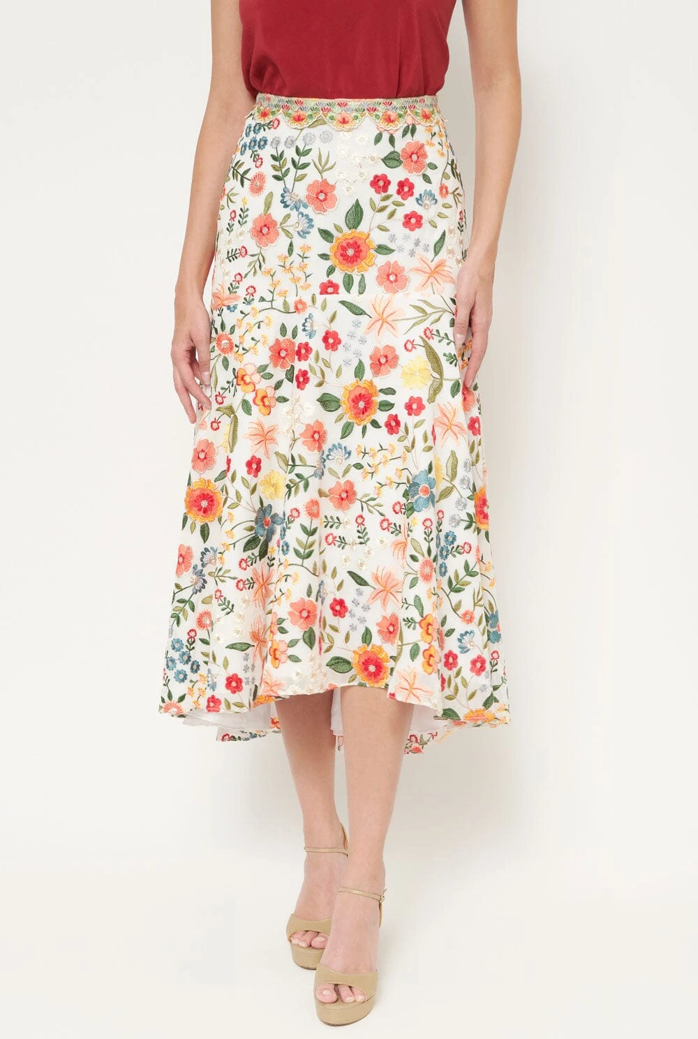This L.D skirt is made in georgette with delicate floral embroidery. It is a feminine and