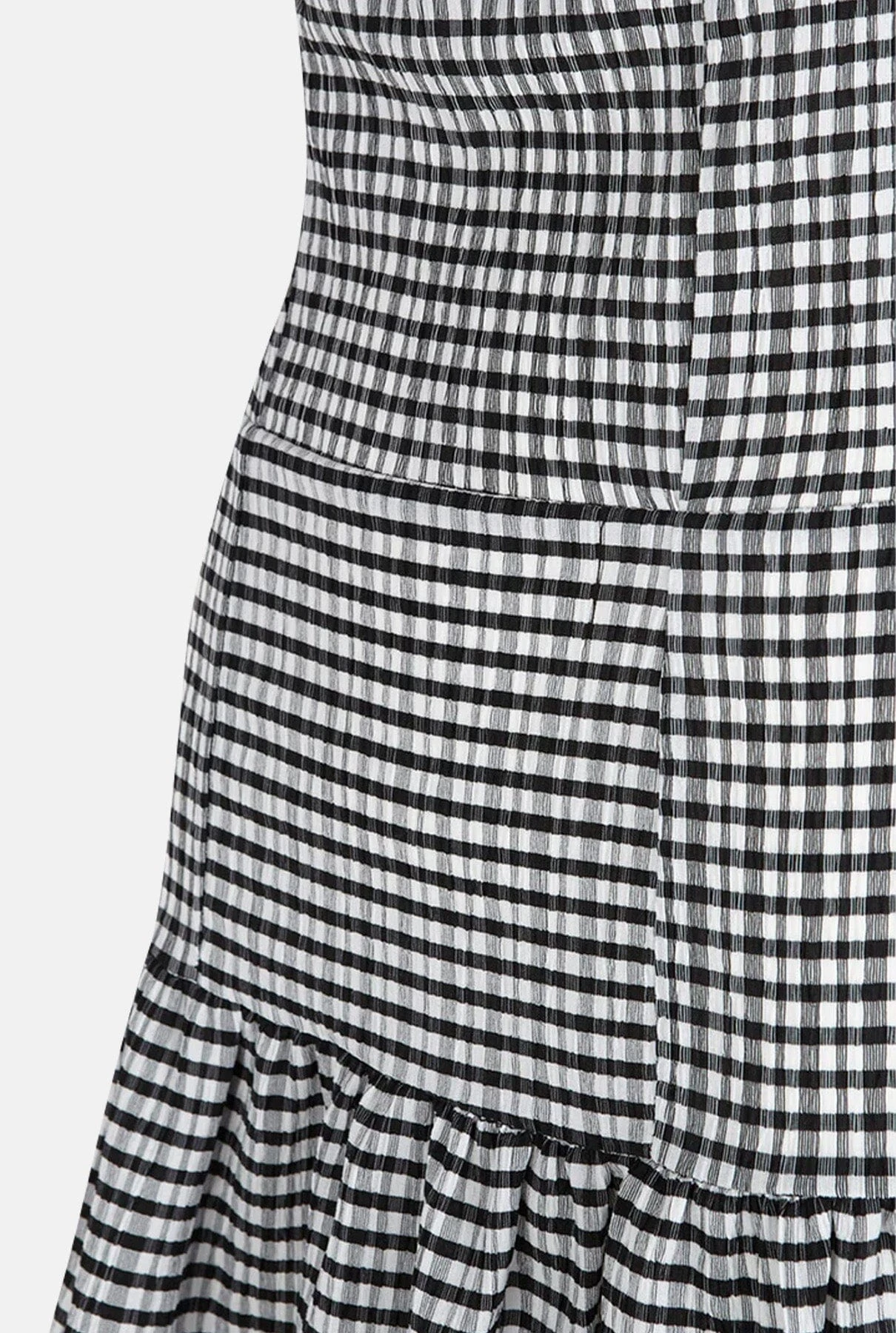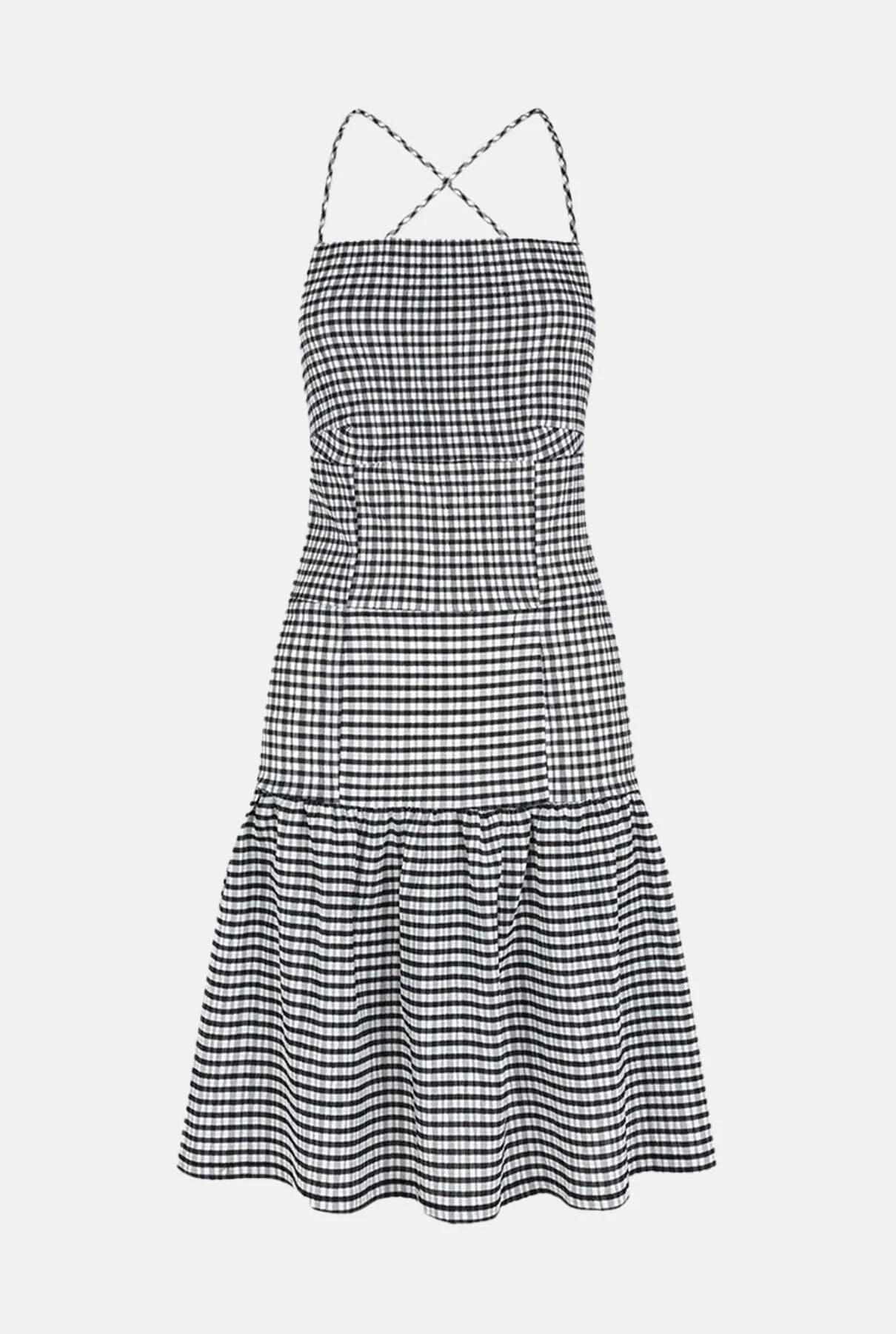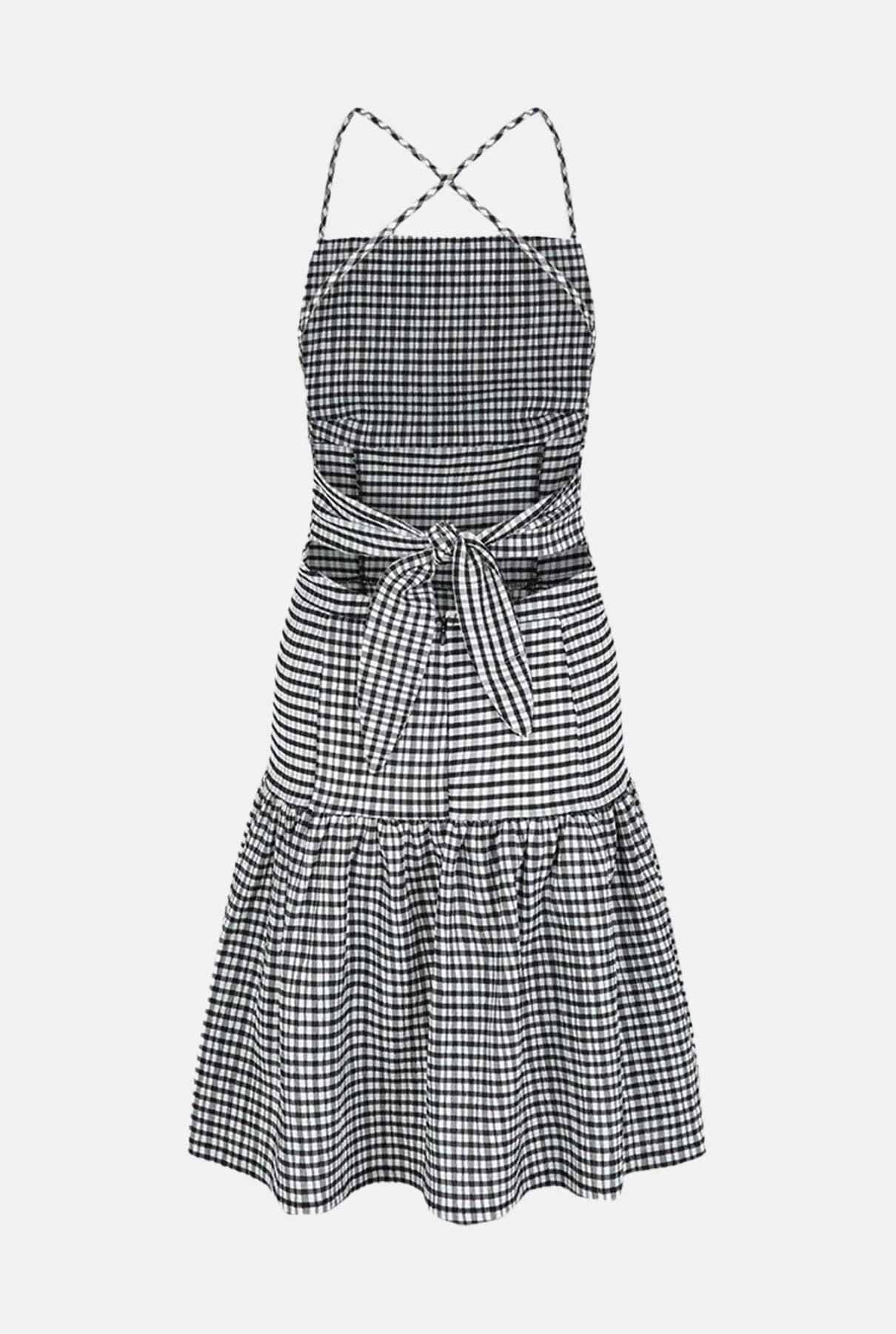 Introducing our latest creation, the Ona Dress. This short vichy print dress is perfect for any occasion. Its back features two crossed straps at the top, elegantly tied at the lower back, creating a stunning visual effect.