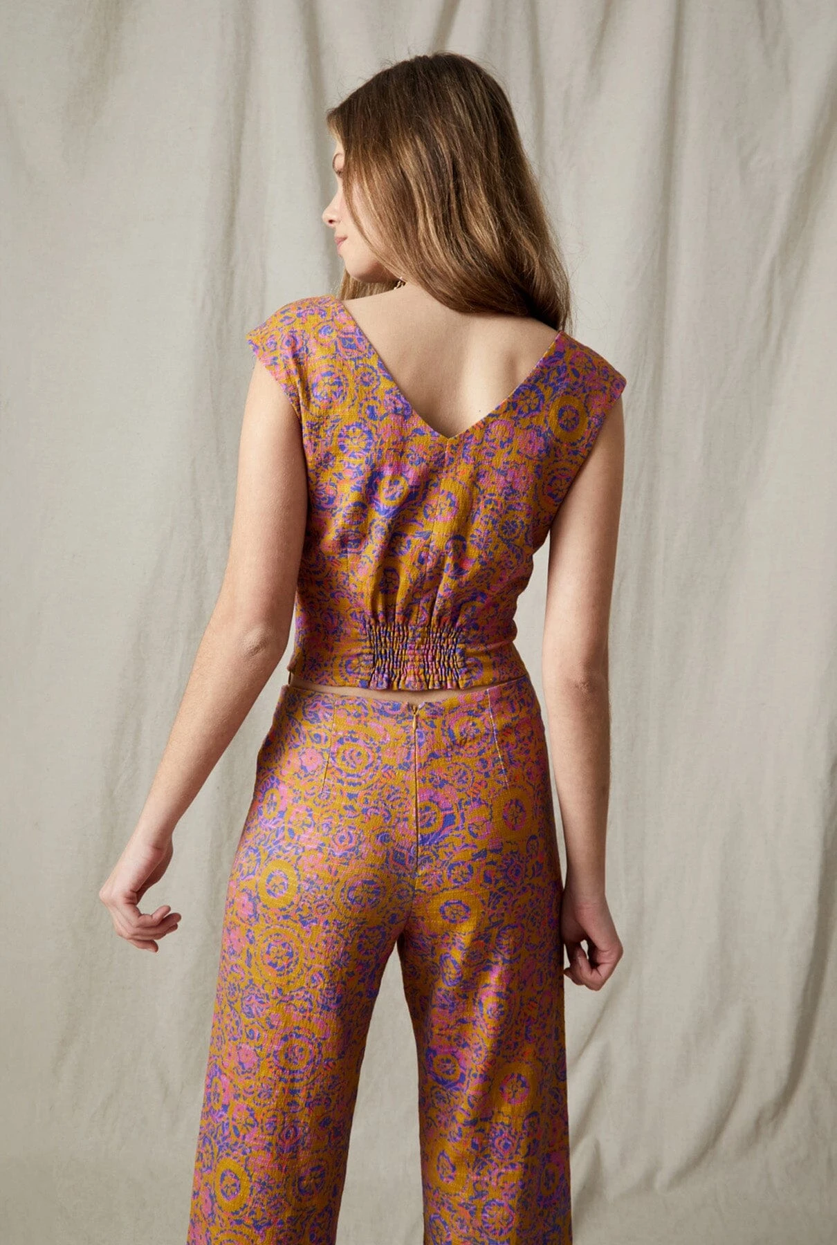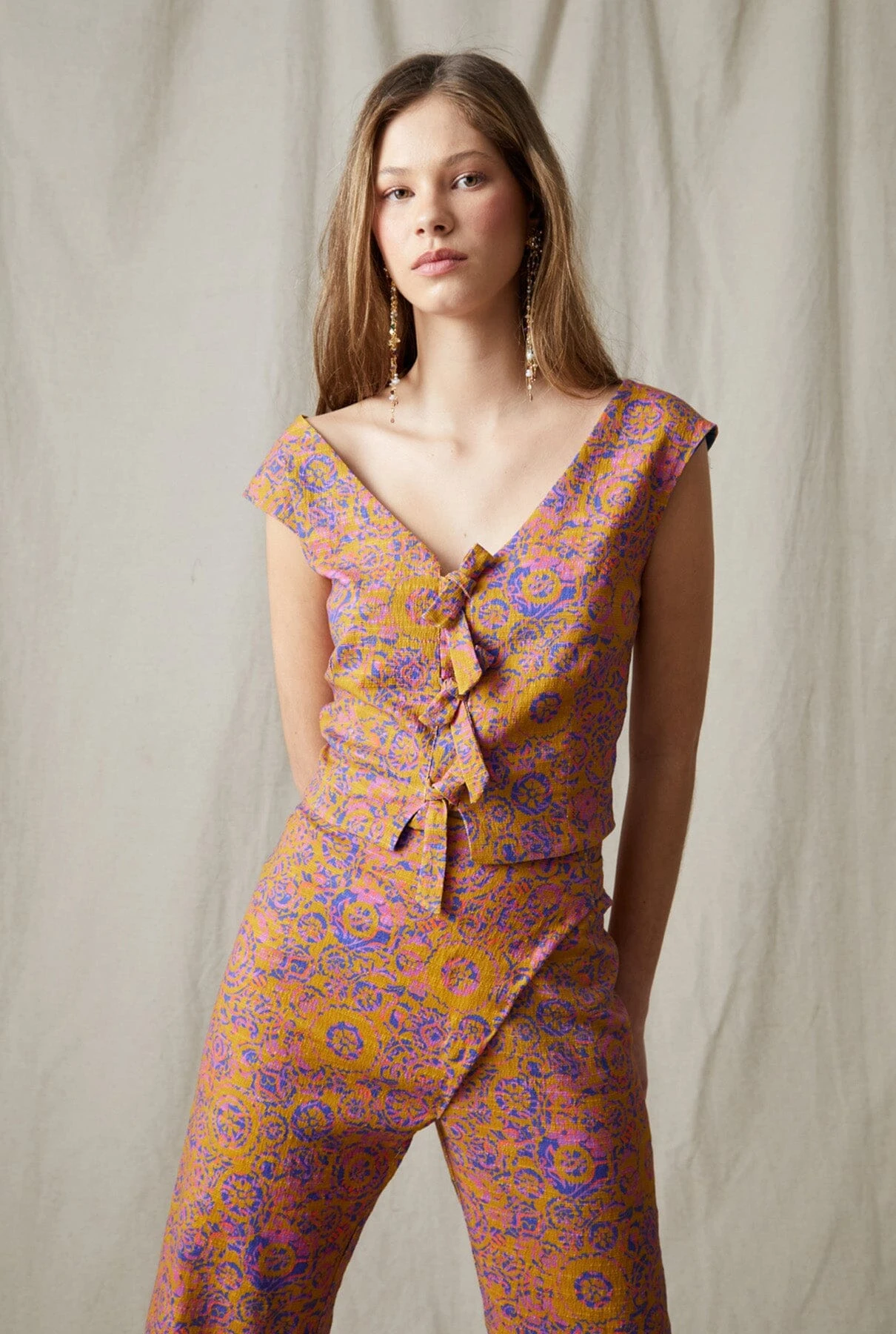 Standard long trousers, featuring a crossover front pleat for a touch of distinction that will make your look exceptionally stylish, with an invisible zip and a belt loop on the side. Pair with our Makosa top for a bold total look.