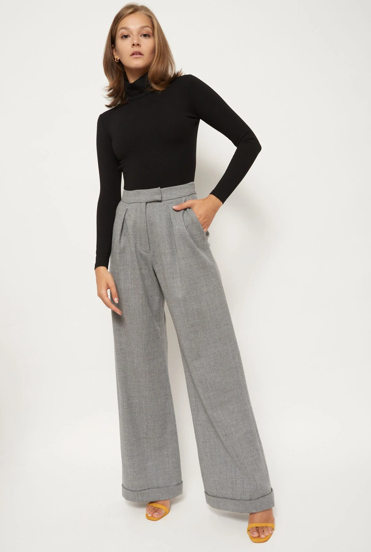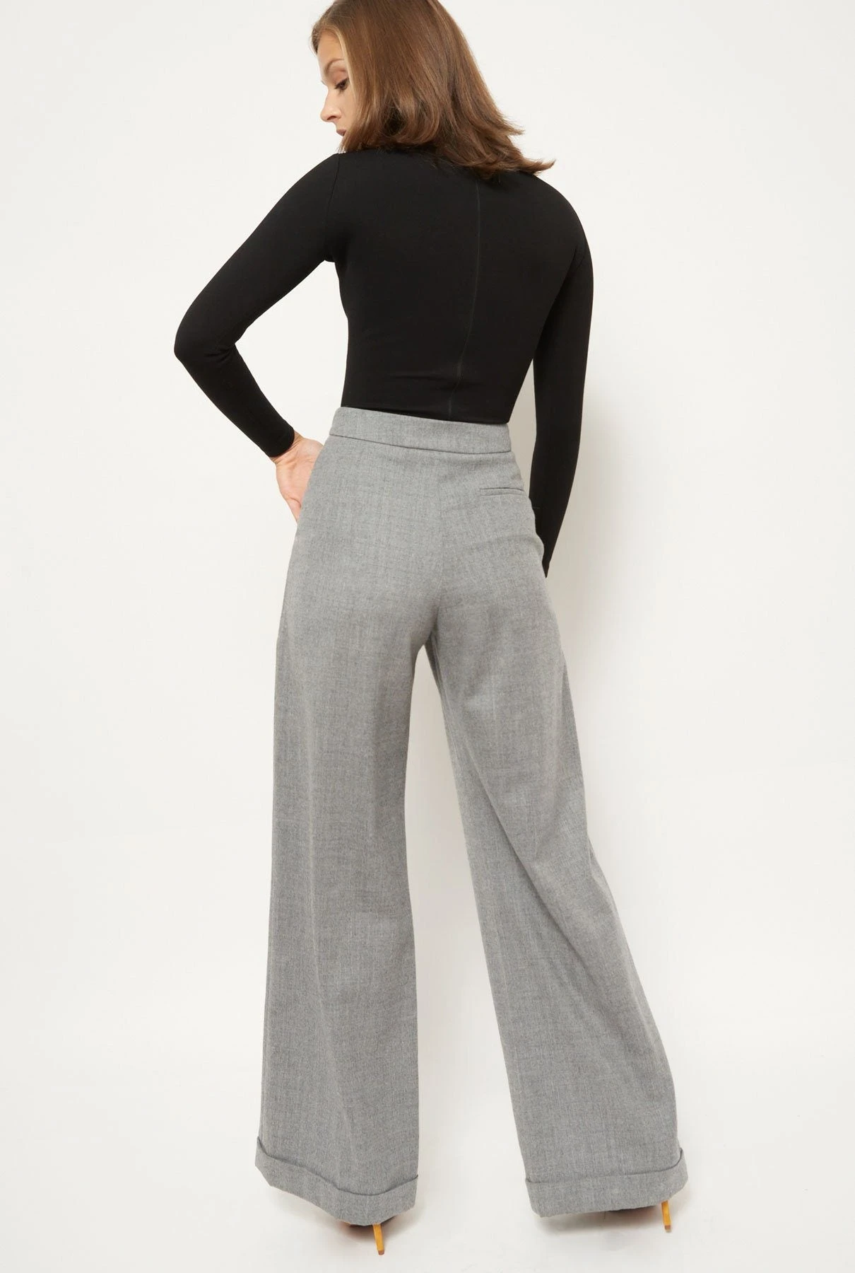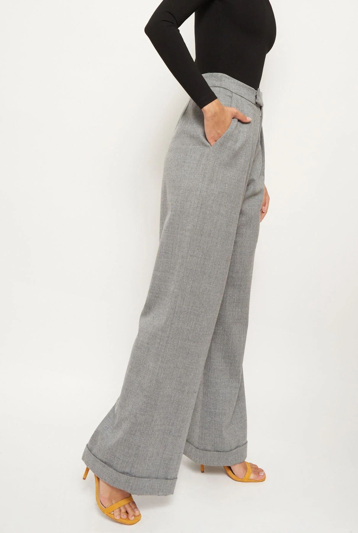 This trouser is high-waisted and fastened with two hooks, an inner summary and a zip. On the front there are side pockets and a small fold from which the central stripe is born. On the back it has a small pocket with bies detailing. The elegant silhouette and comfortable fabric make them a versatile all-rounder, perfect for any occasion. An essential in any closet. Designed by Diddo.