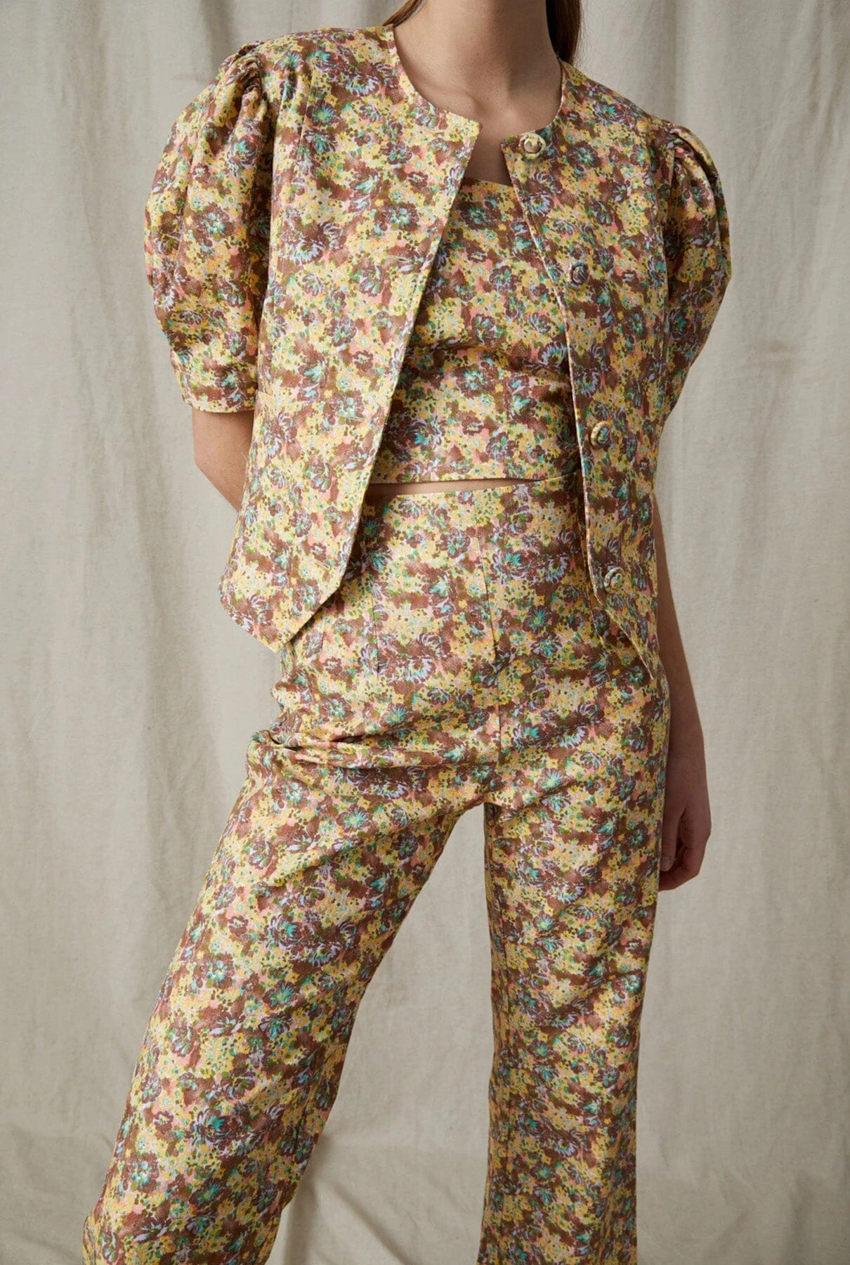 High-waisted, tailored trousers with box pleats ensure a flattering fit. The semi-width leg design offers comfort without sacrificing style, providing a sleek and sophisticated silhouette.