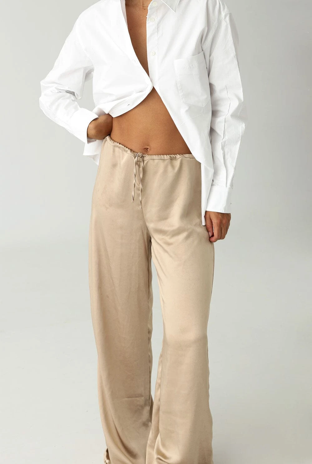These satin trousers are perfect for both formal and informal events. Pair with the oxford blouse and high heels for a special evening look.
