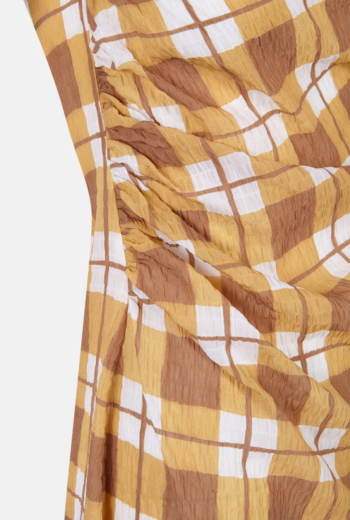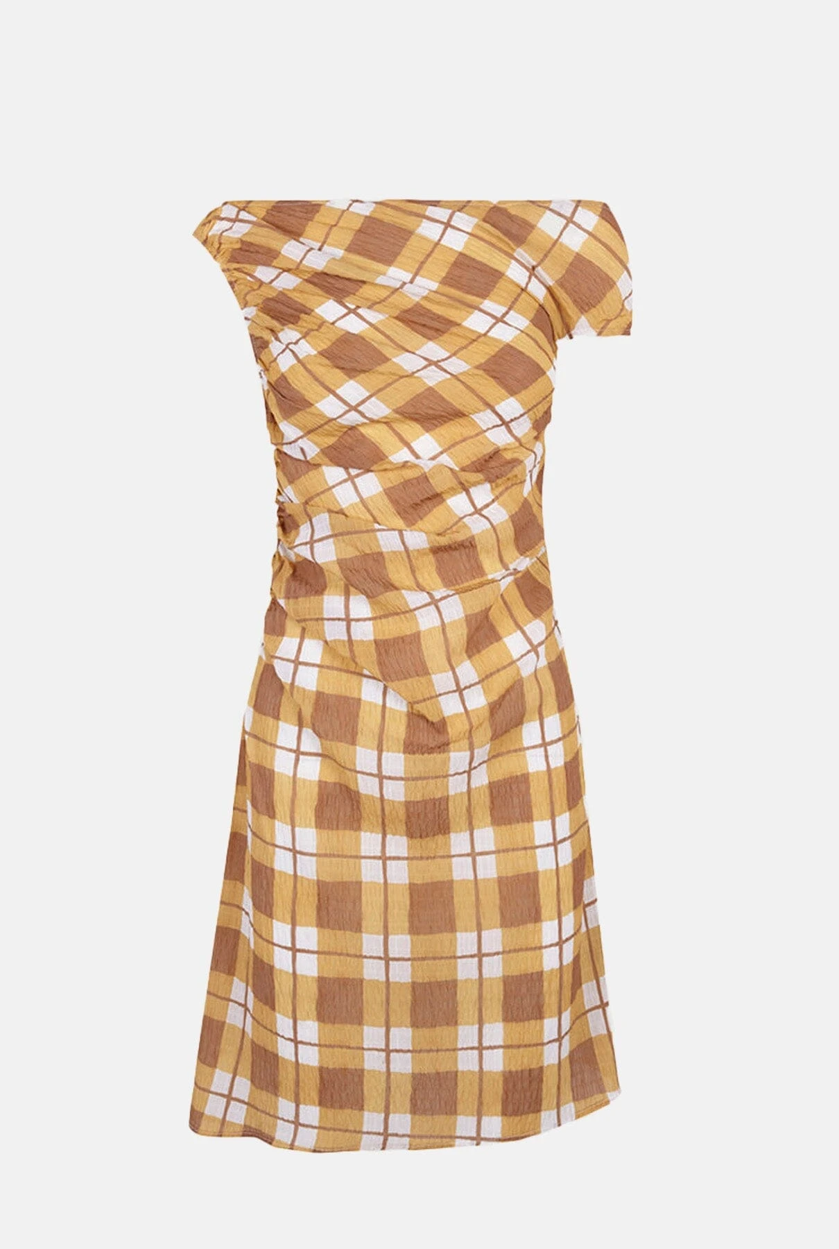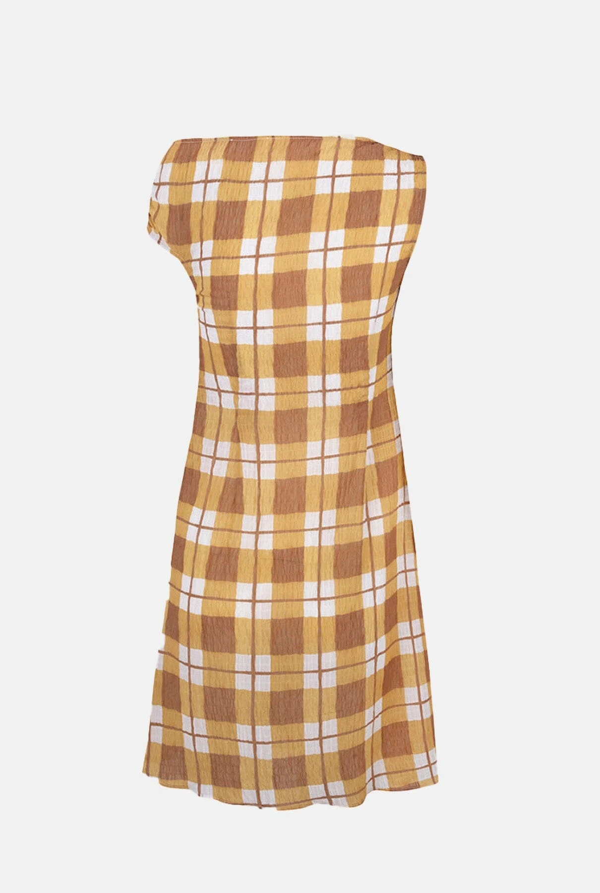 Introducing the new Vanilla Dress. This dress is a truly original choice, with its irregular shape making it unique. Additionally, it is asymmetric yet has a perfect length for any occasion. Its color is completely on trend this season.