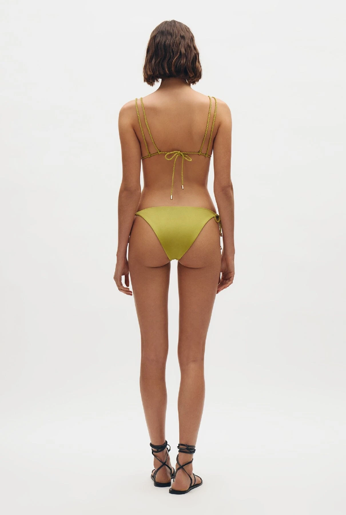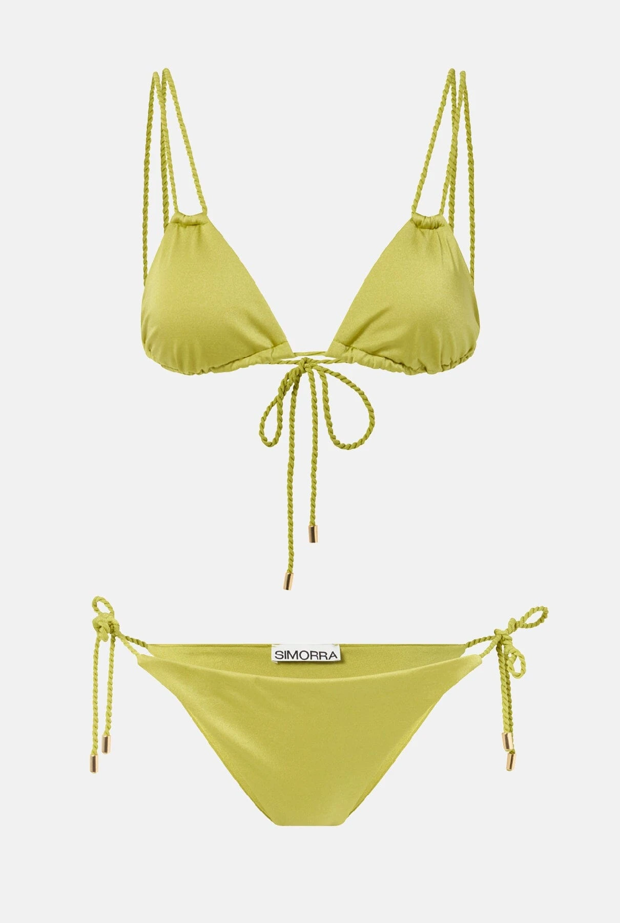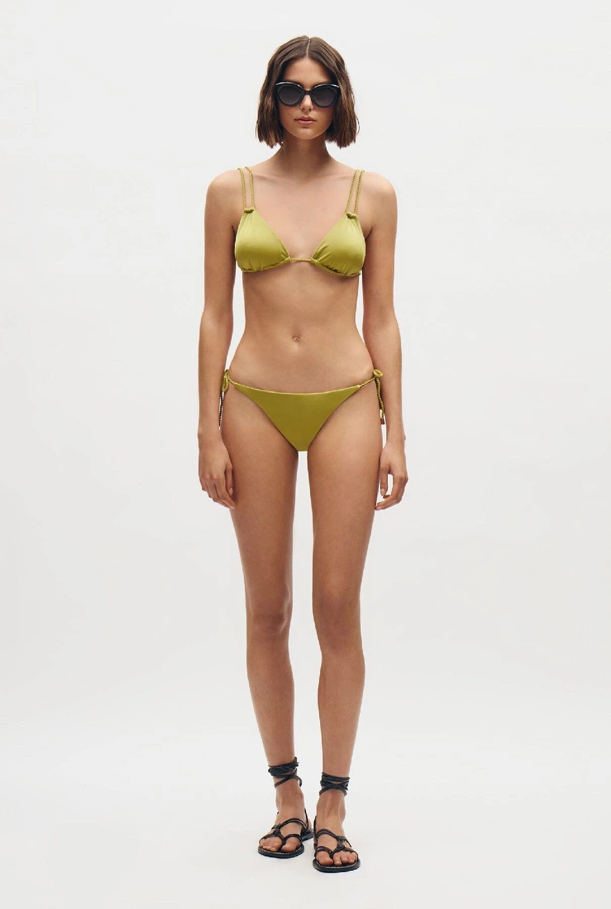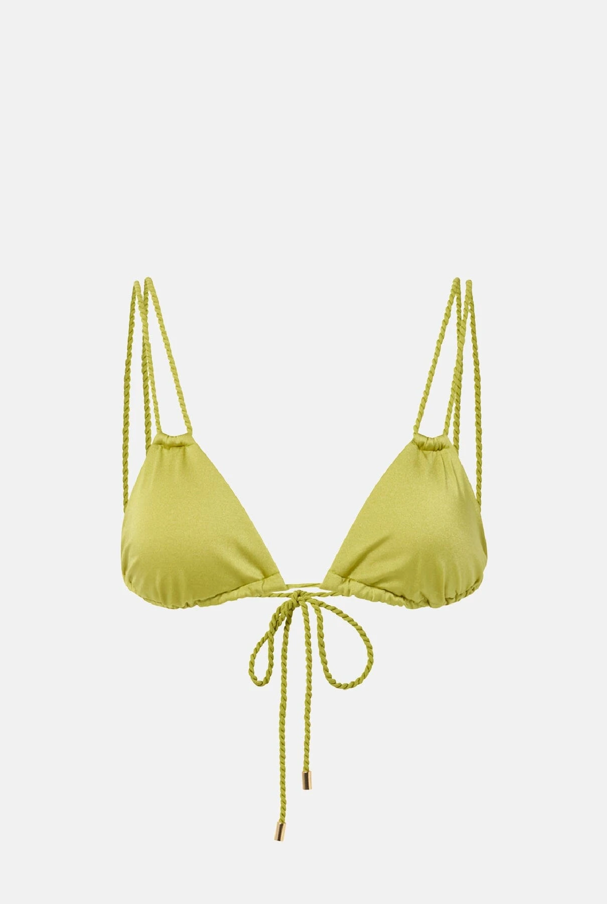 Unicolor triangle bikini top with double braided straps and removable foam.