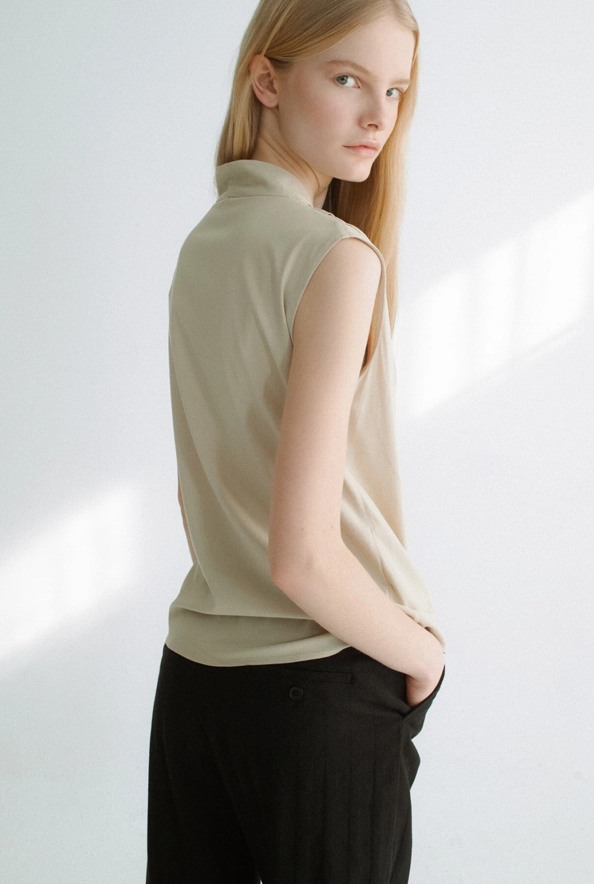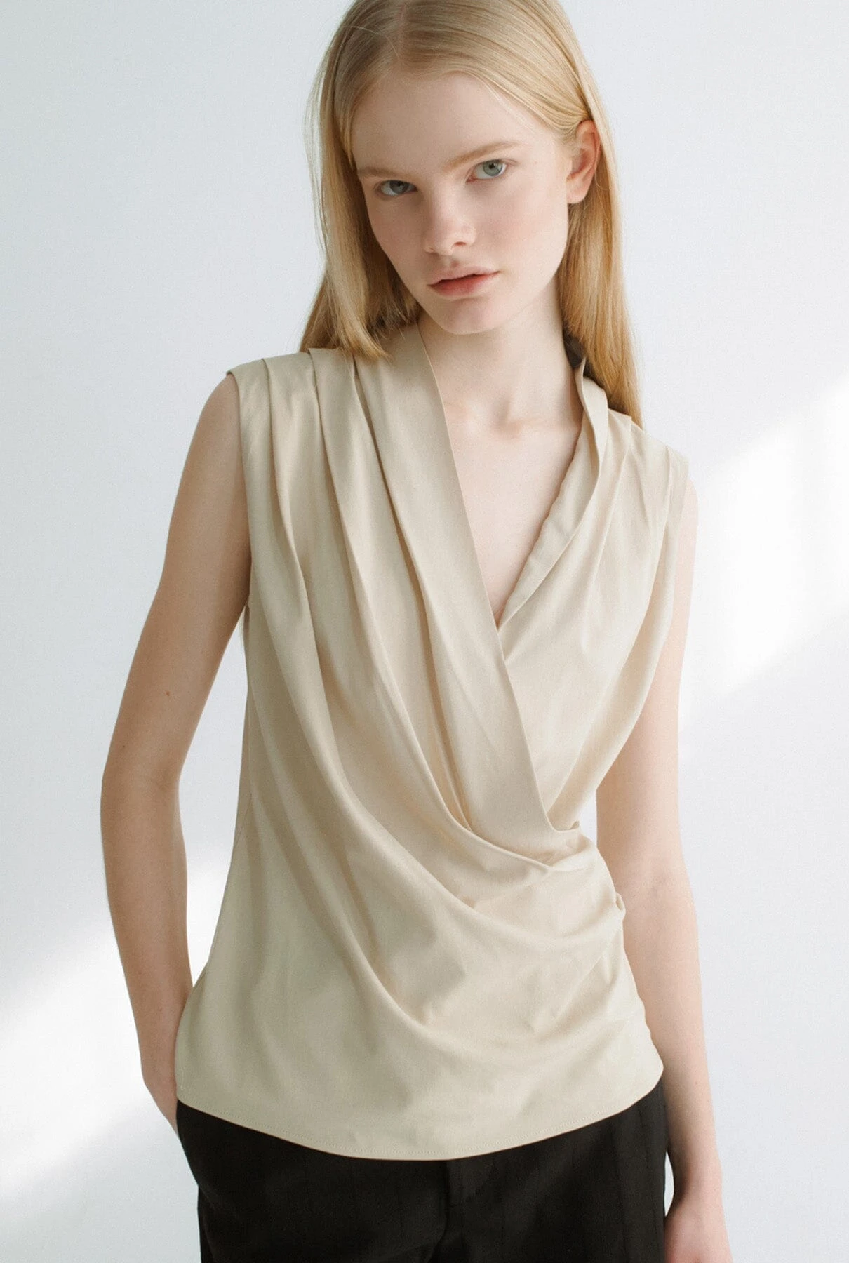Draped top by Miguel Marinero in beige cotton. Complete your wardrobe with this wardrobe staple, a versatile option for smart meetings or a more casual look. Easy to tuck into high-waisted trousers or jeans because of the lightweight hem.