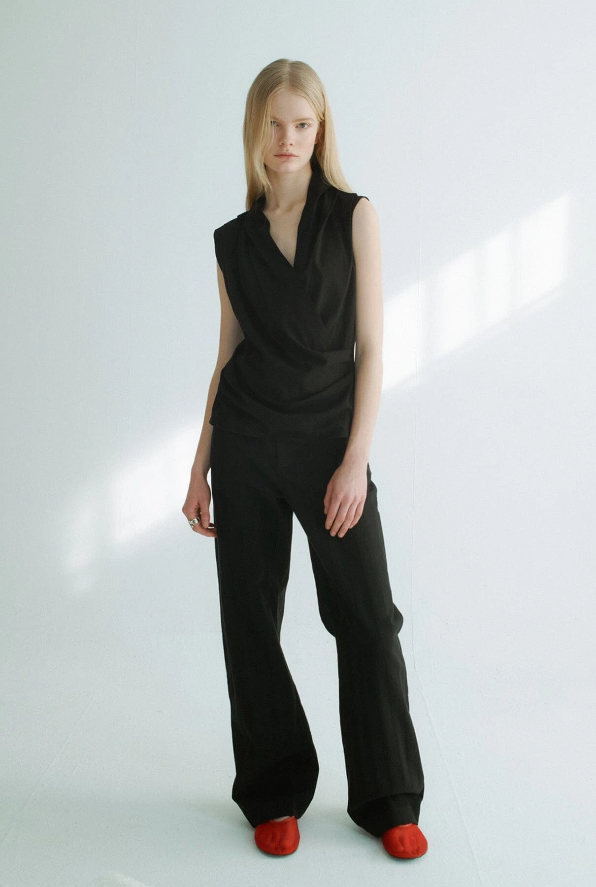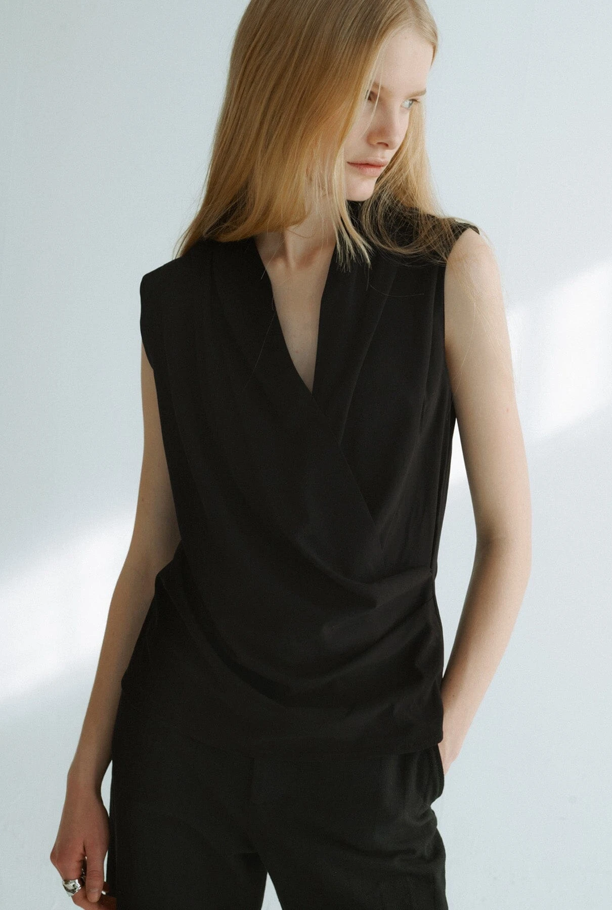 Draped top by Miguel Marinero in black cotton. Complete your wardrobe with this wardrobe staple, a versatile option for smart meetings or a more casual look. Easy to tuck into high-waisted trousers or jeans because of the lightweight hem.