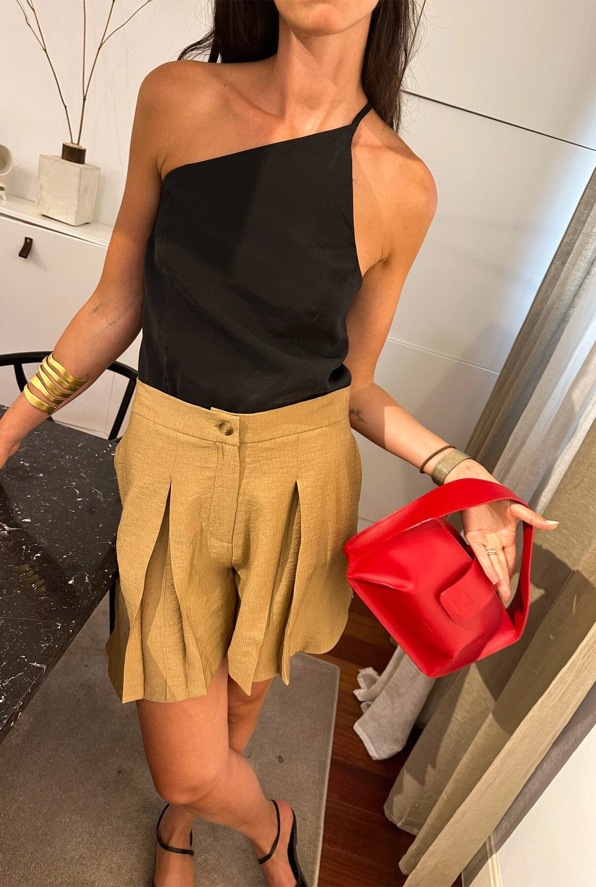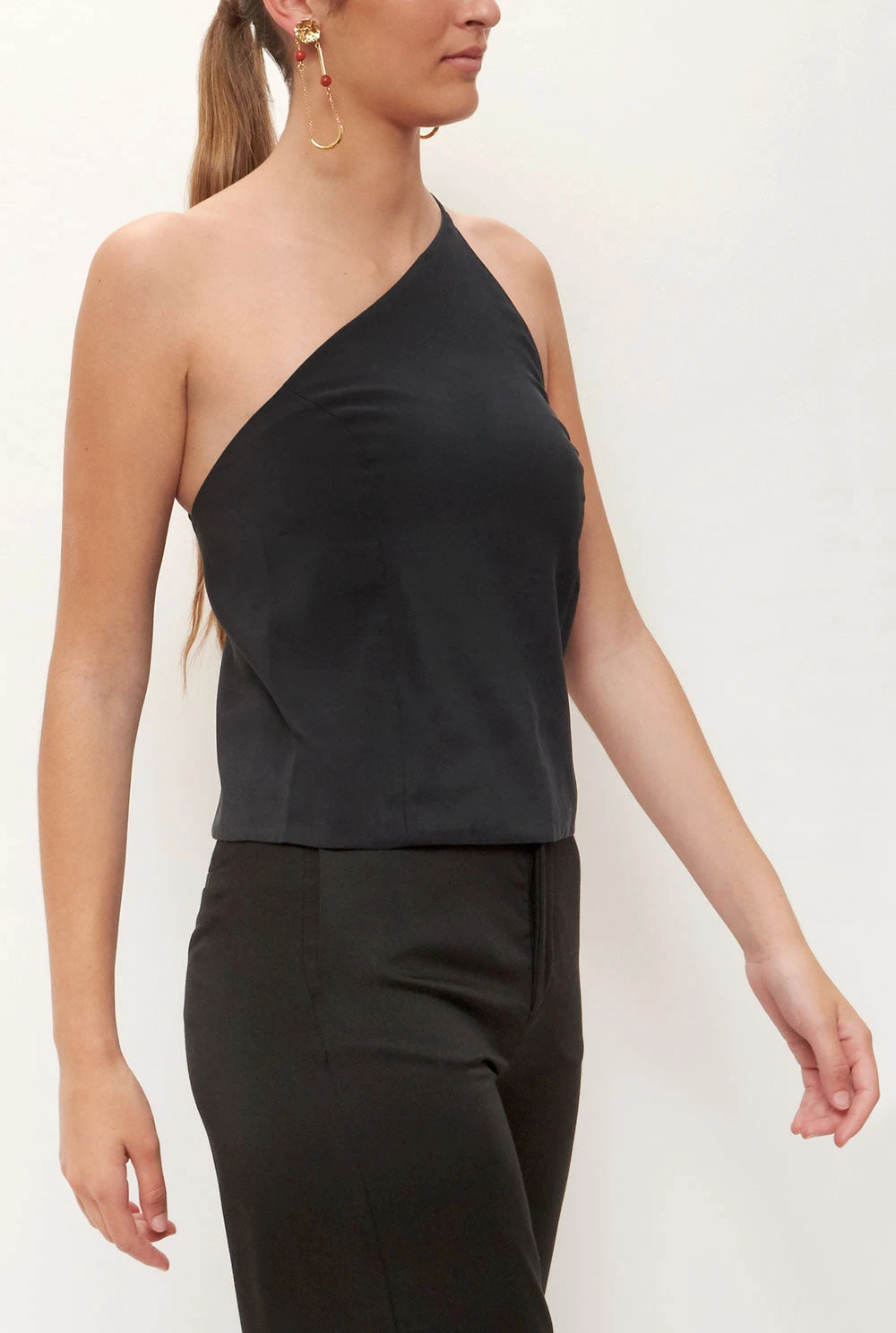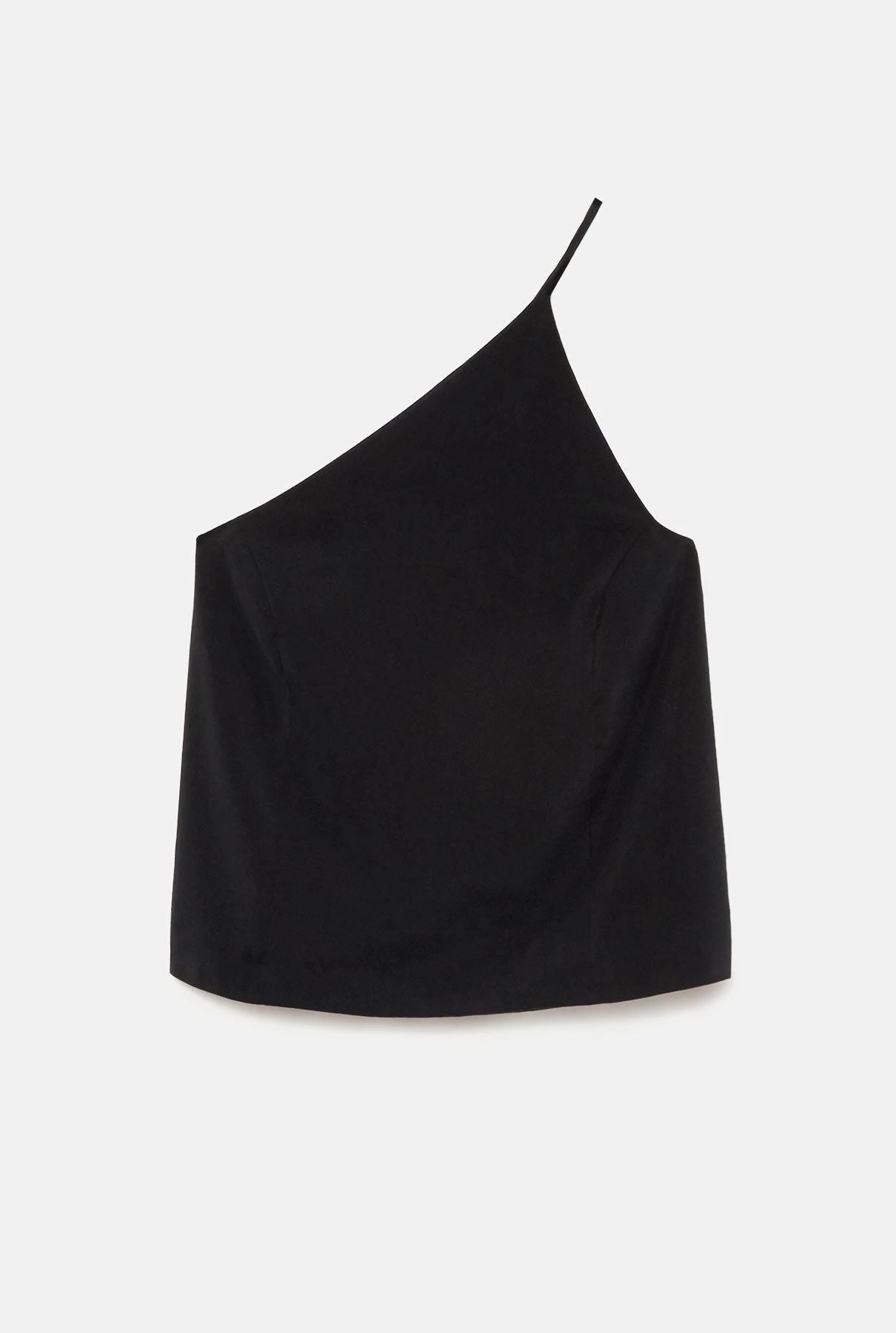 Sleeveless black top with asymmetric neckline.Lining.Wash maximum at 40 degrees, iron at medium temperature, do not use bleach, do not tumble dry. Designed by Alava Brand